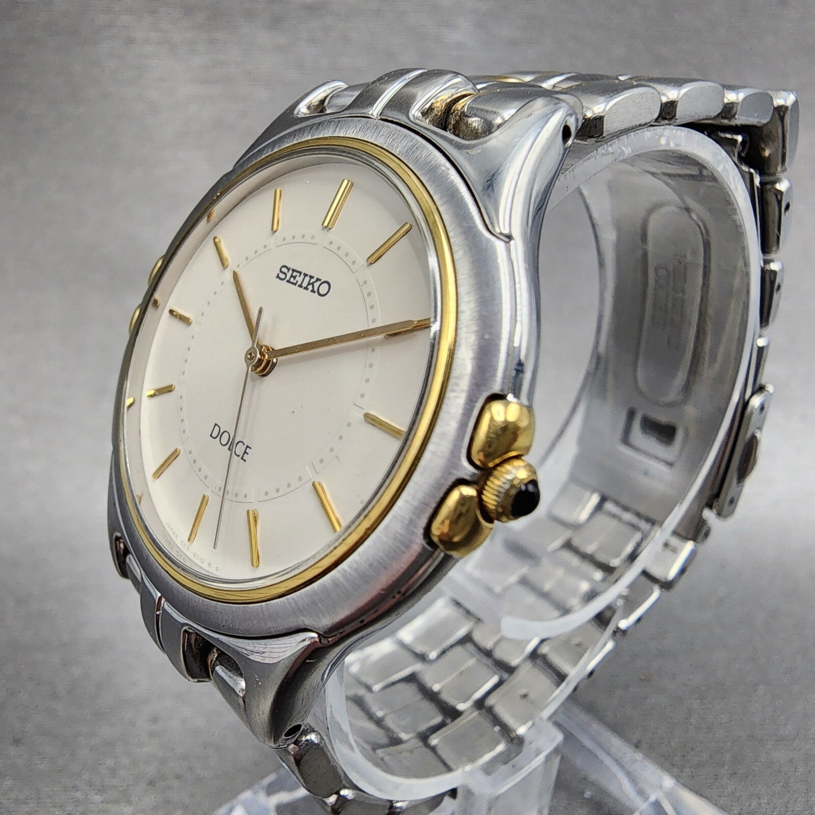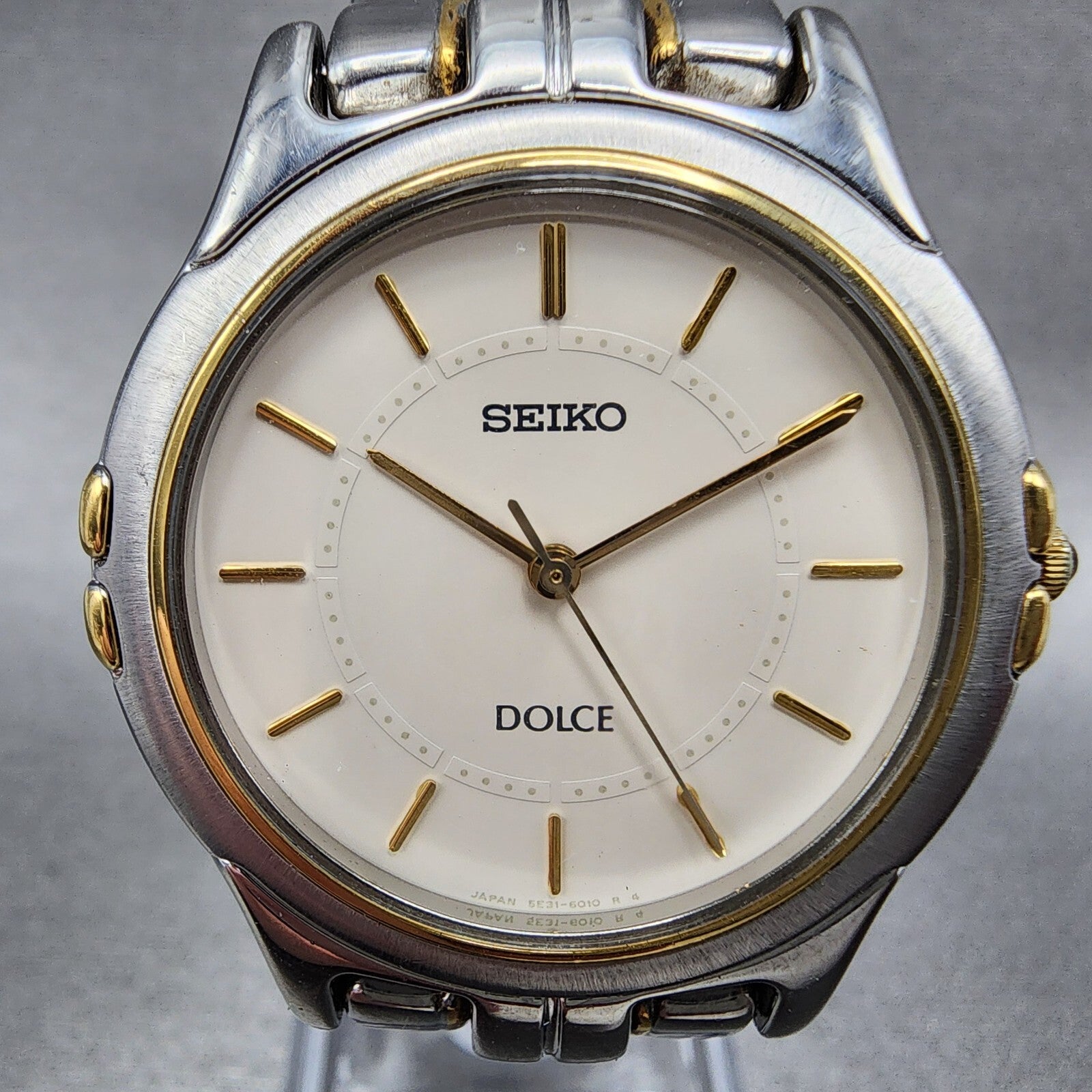 Seiko Dolce Watch Men 33mm Cream Dial Two Tone Round 5E31-600A New Battery