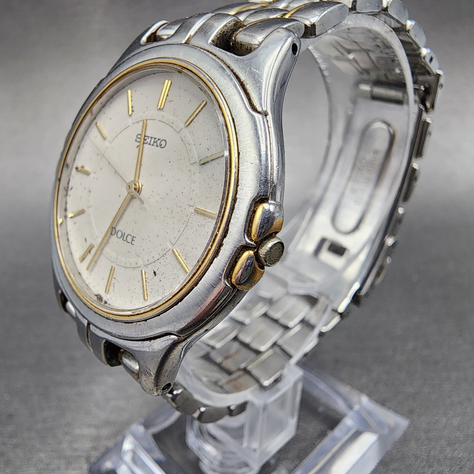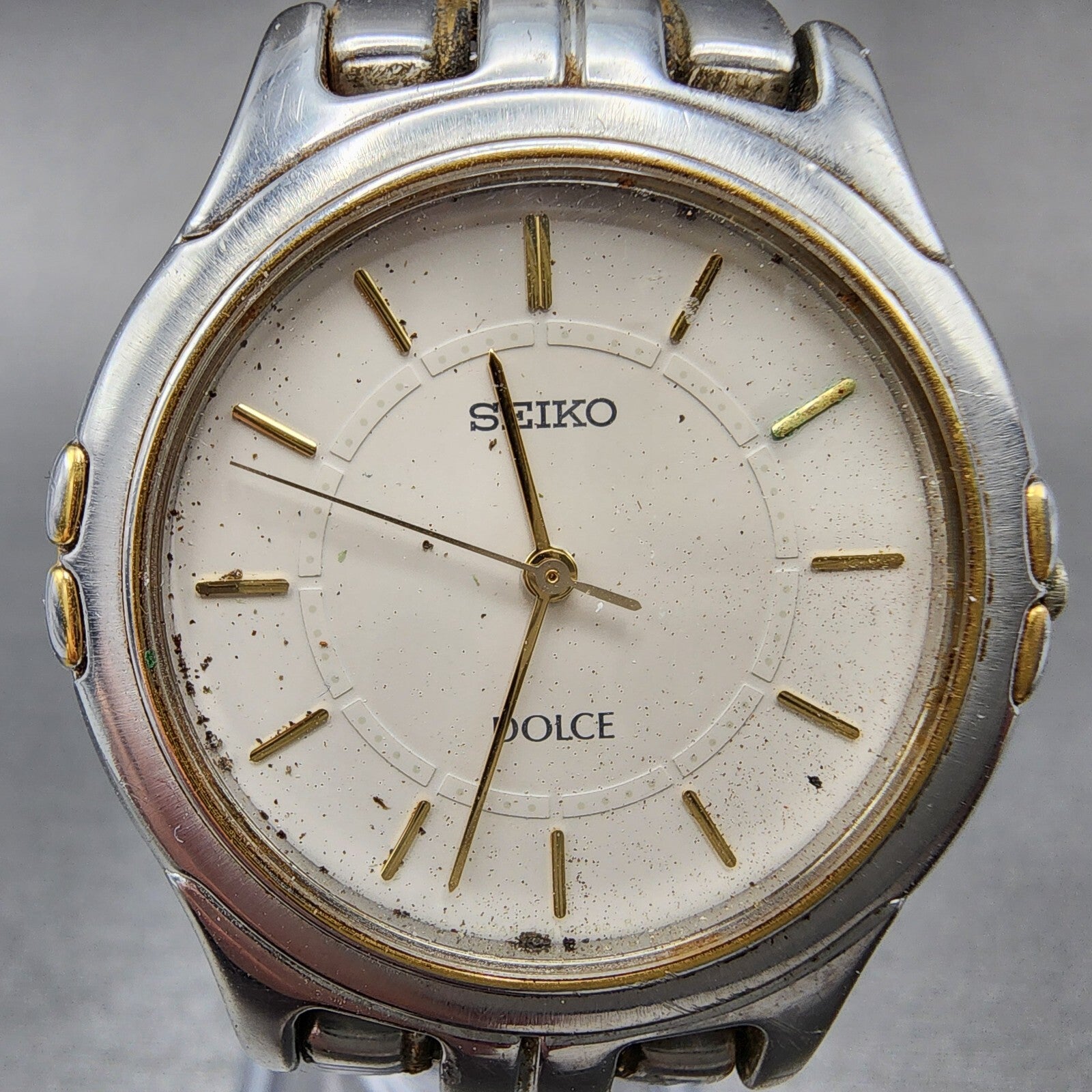 Seiko Dolce Watch Men 33mm Gray Dial Two Tone Round 8J41-6140 PARTS