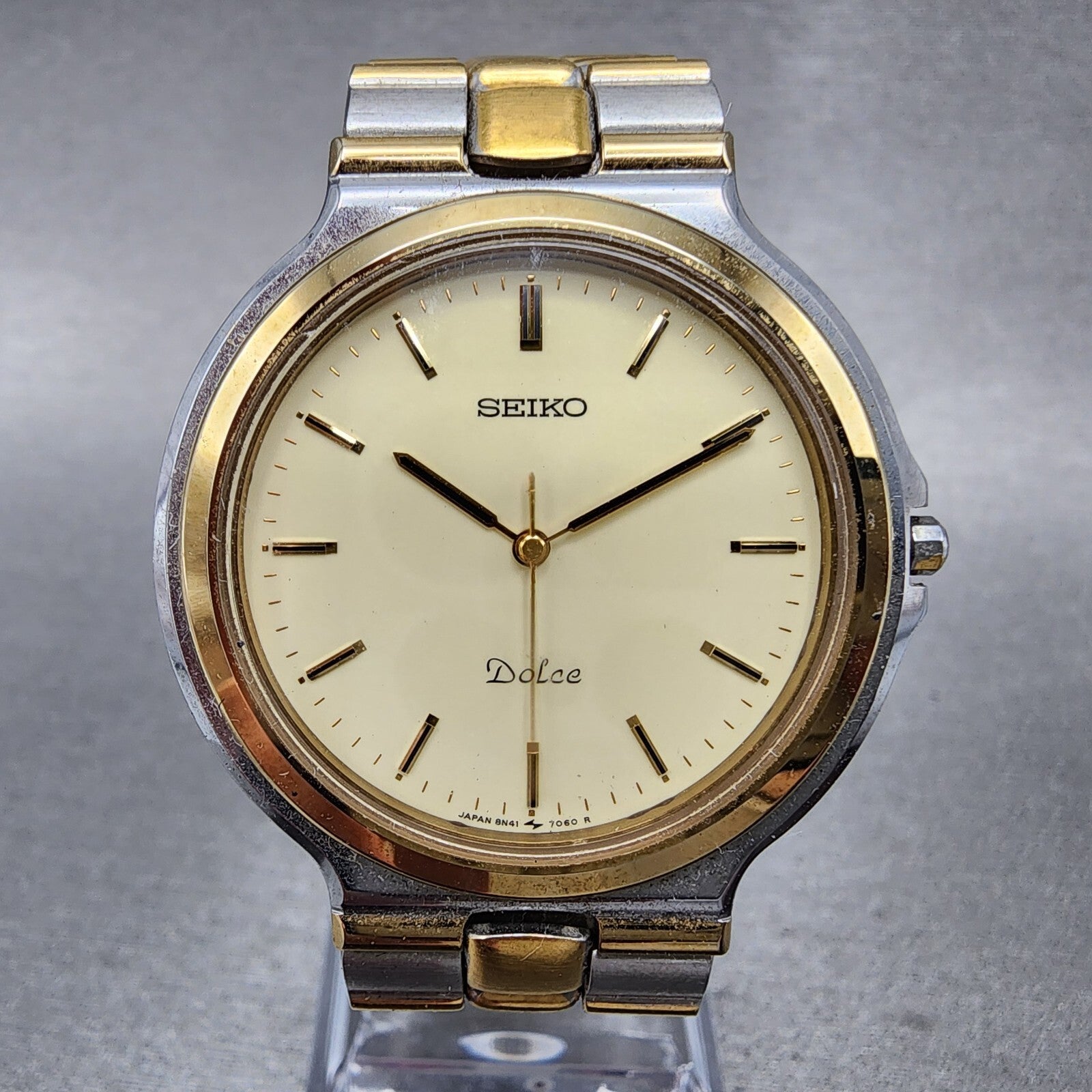 Seiko Dolce Watch Men 35mm Cream Dial Two Tone Round 8N41-7020 New Battery