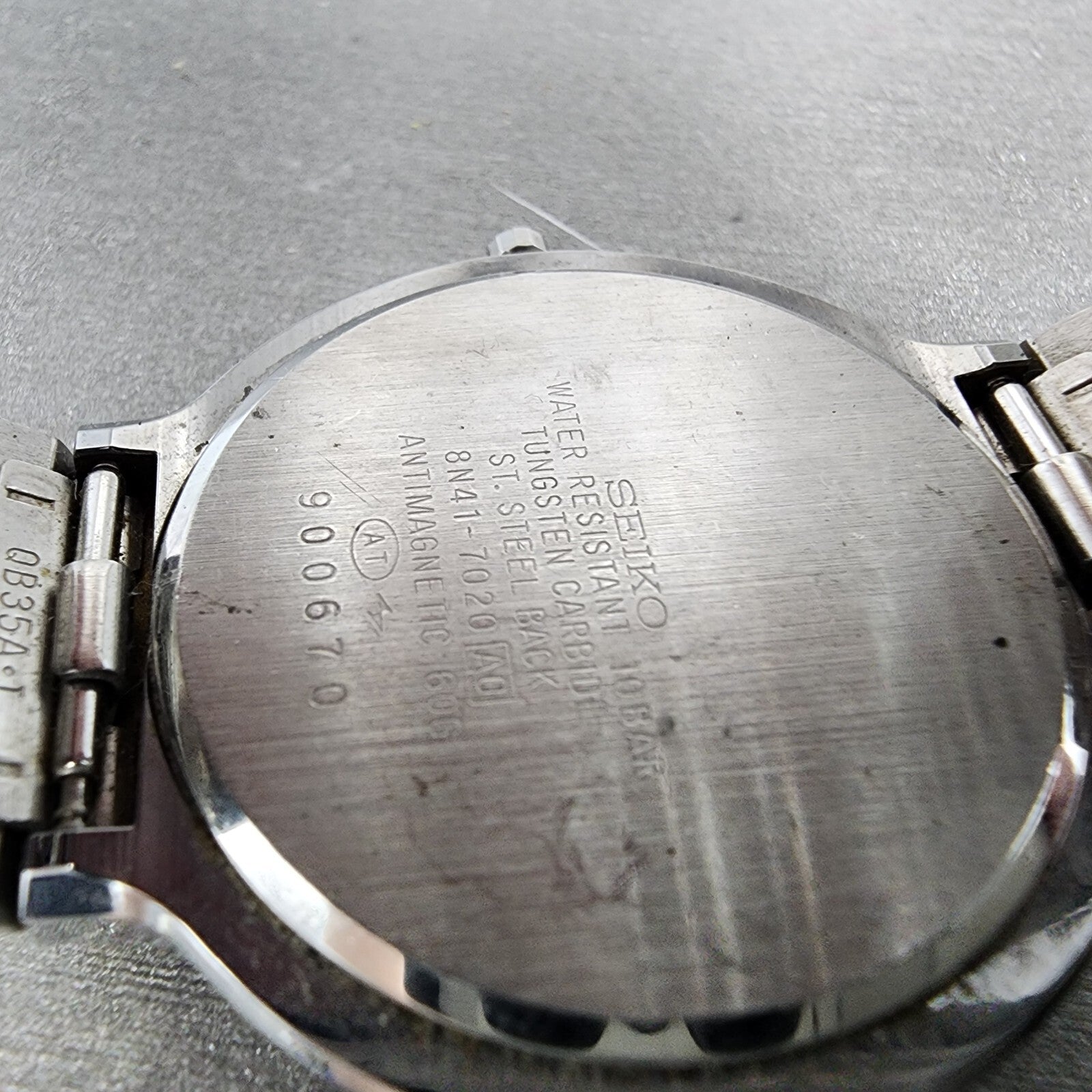 This watch has been used but is in good working condition. There is scratches on the watch. please refer to pictures.