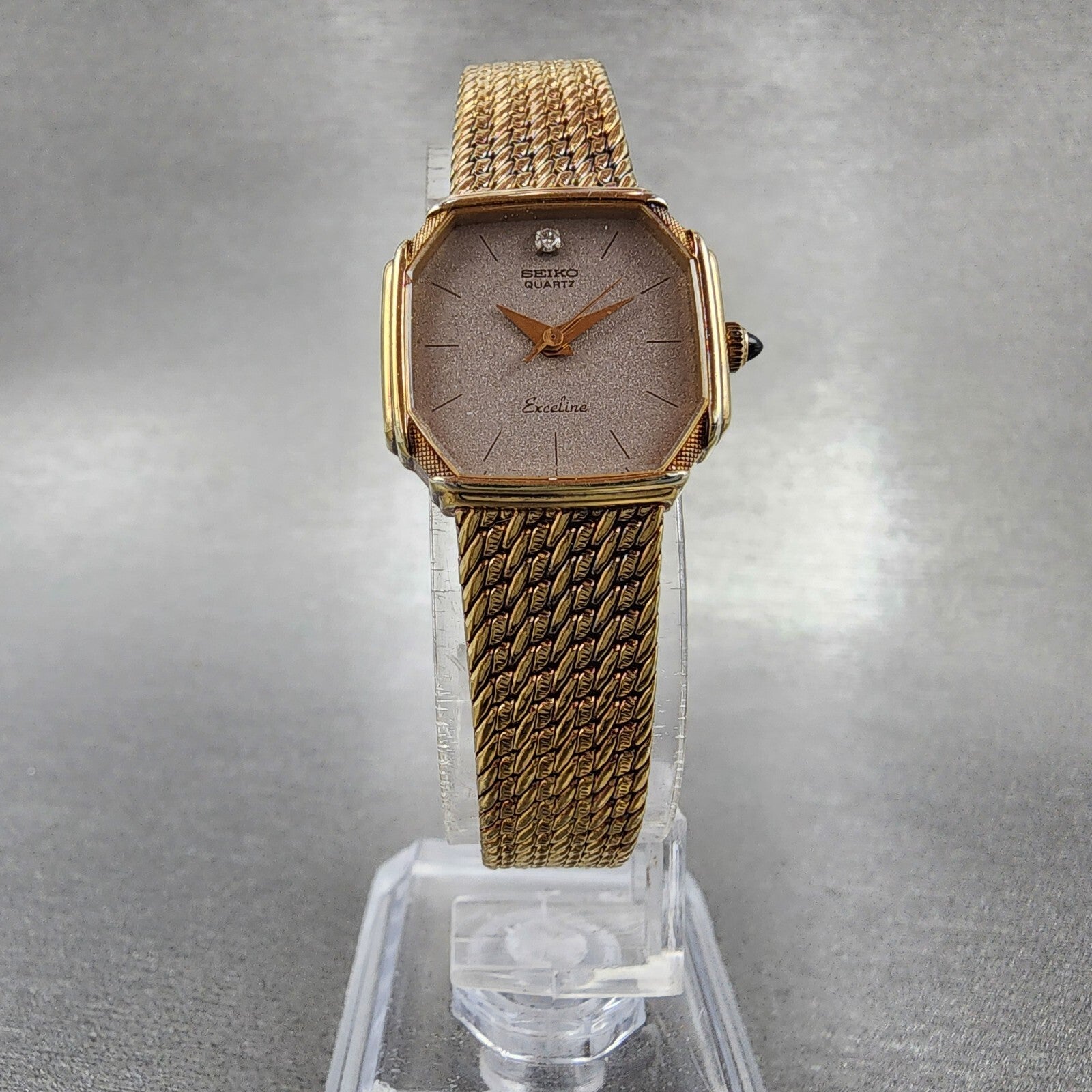 Seiko Exceline Watch Women 20mm Gray Dial Gold Tone 1221-5080 New Battery