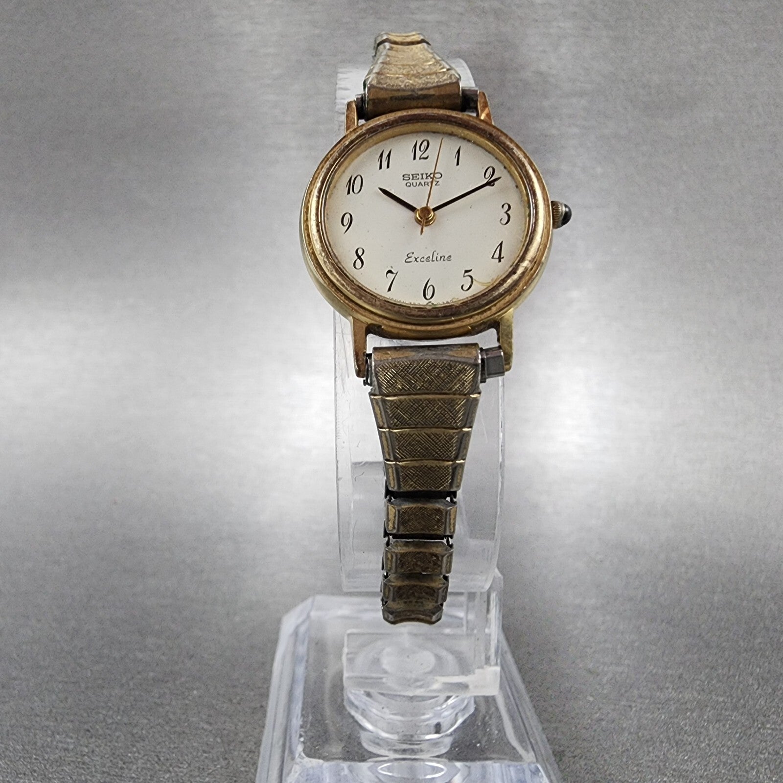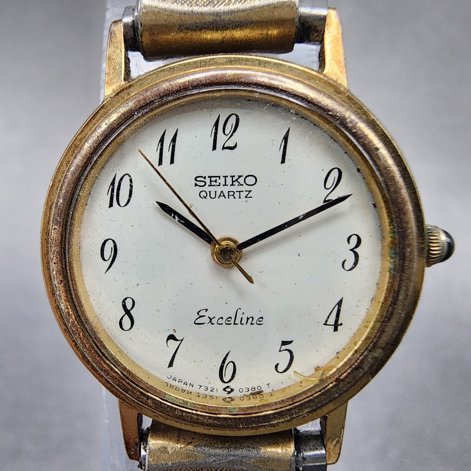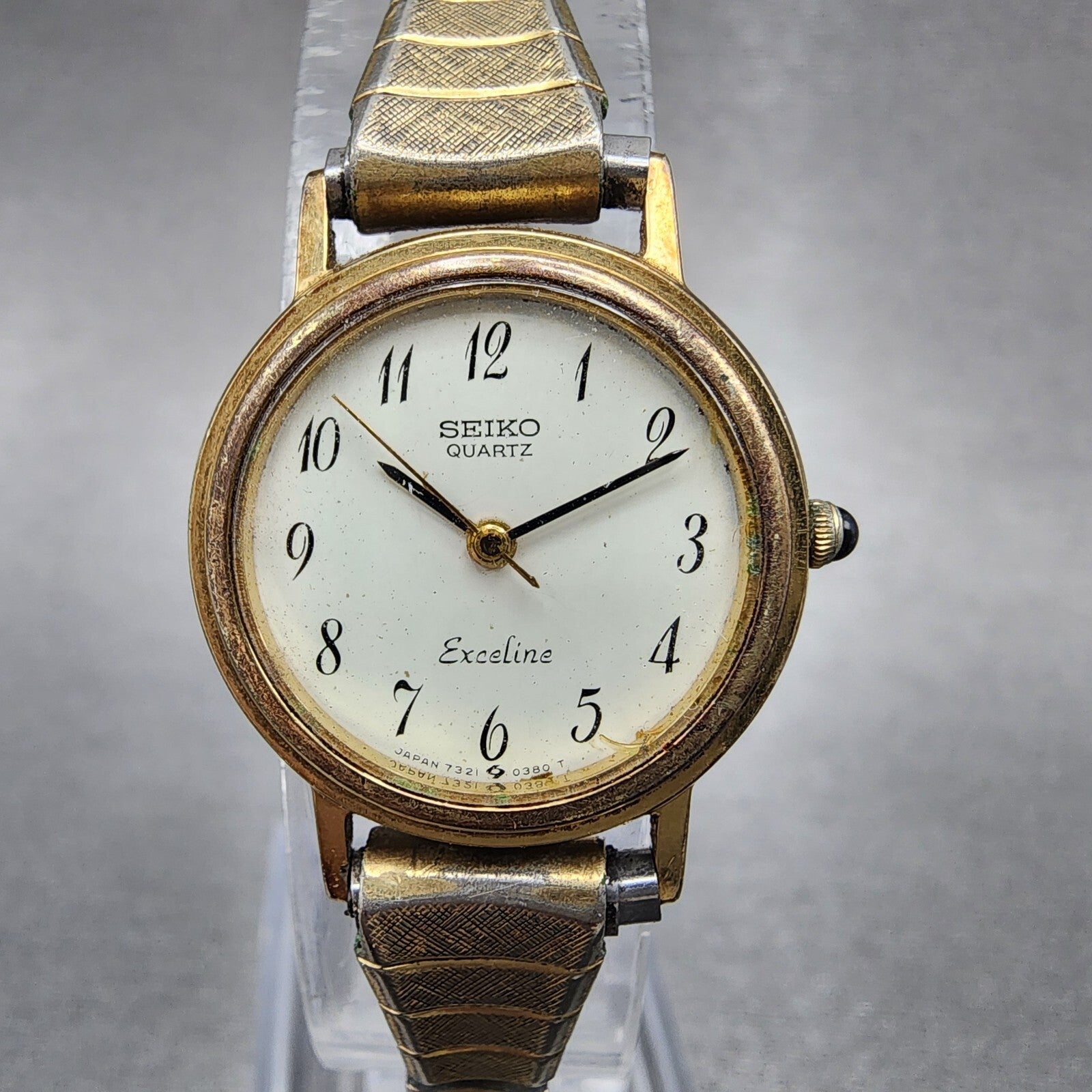 Seiko Exceline Watch Women 22mm White Dial Gold Tone Round 7321-0070 New Battery
