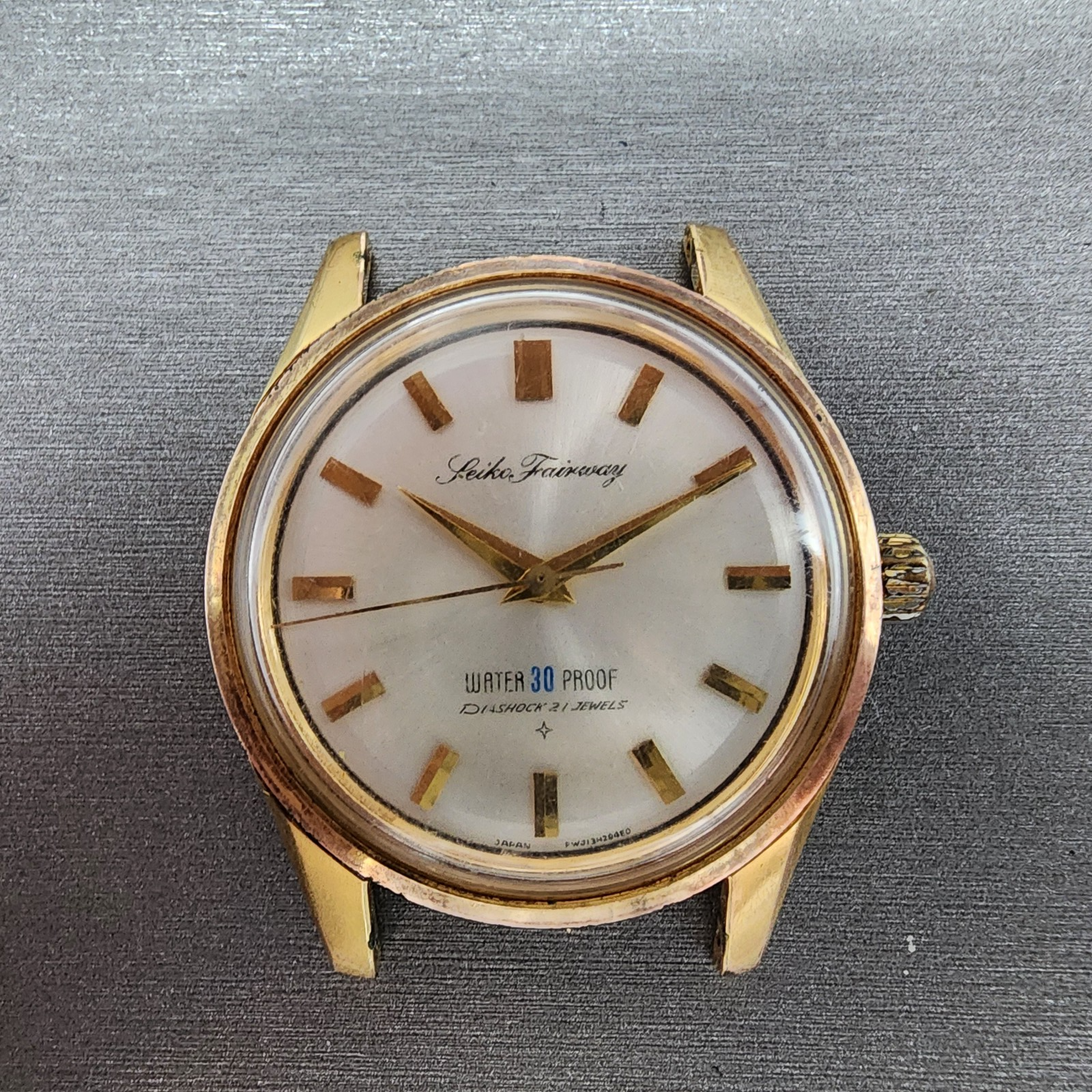 Seiko Fairway Watch Men 36mm Silver Dial Gold Tone Manual Runs