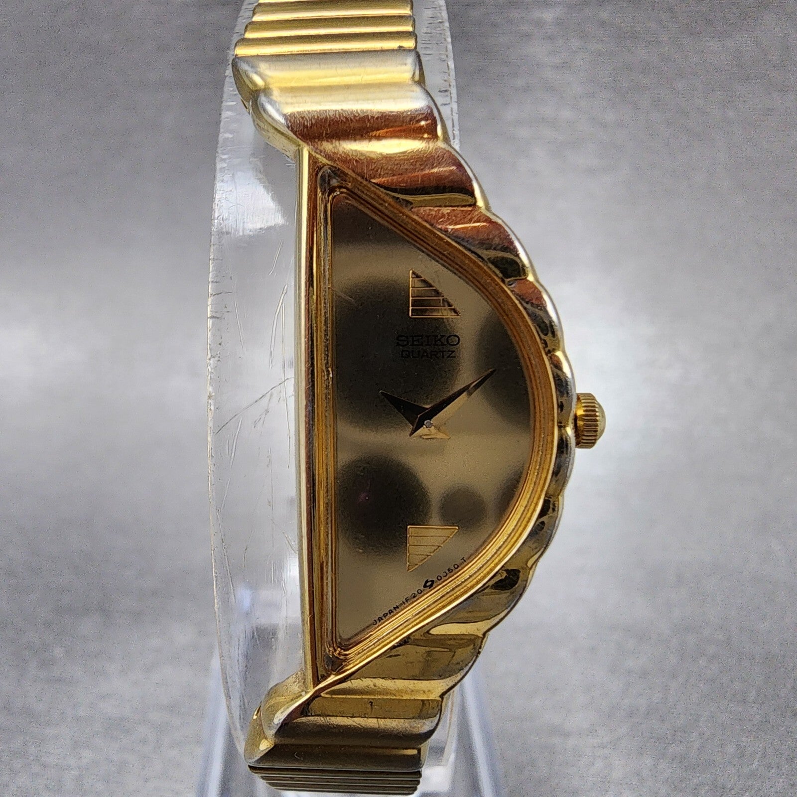 Seiko Halfmoon Watch Women 14mm Gold Dial Gold Tone Asymmetrical New Battery