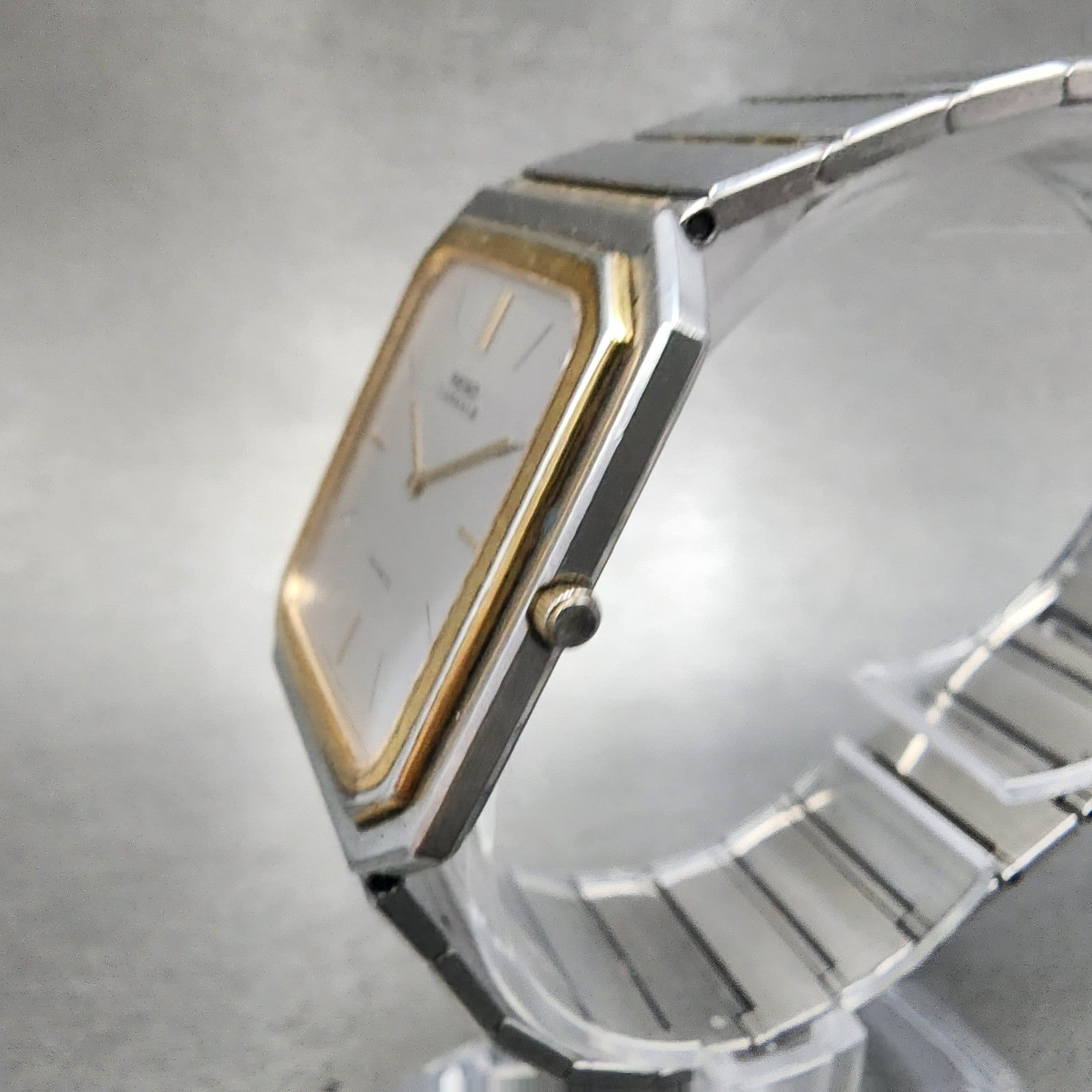 Seiko Lassale Tank Watch Men 28mm Silver Dial Two Tone 9300-5559 New Battery