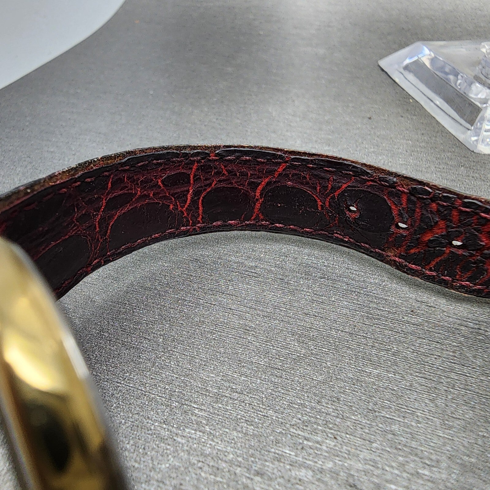 LEATHER ON BACK OF BAND IS PEELING OFF. This watch has been worn but is in good working condition.
