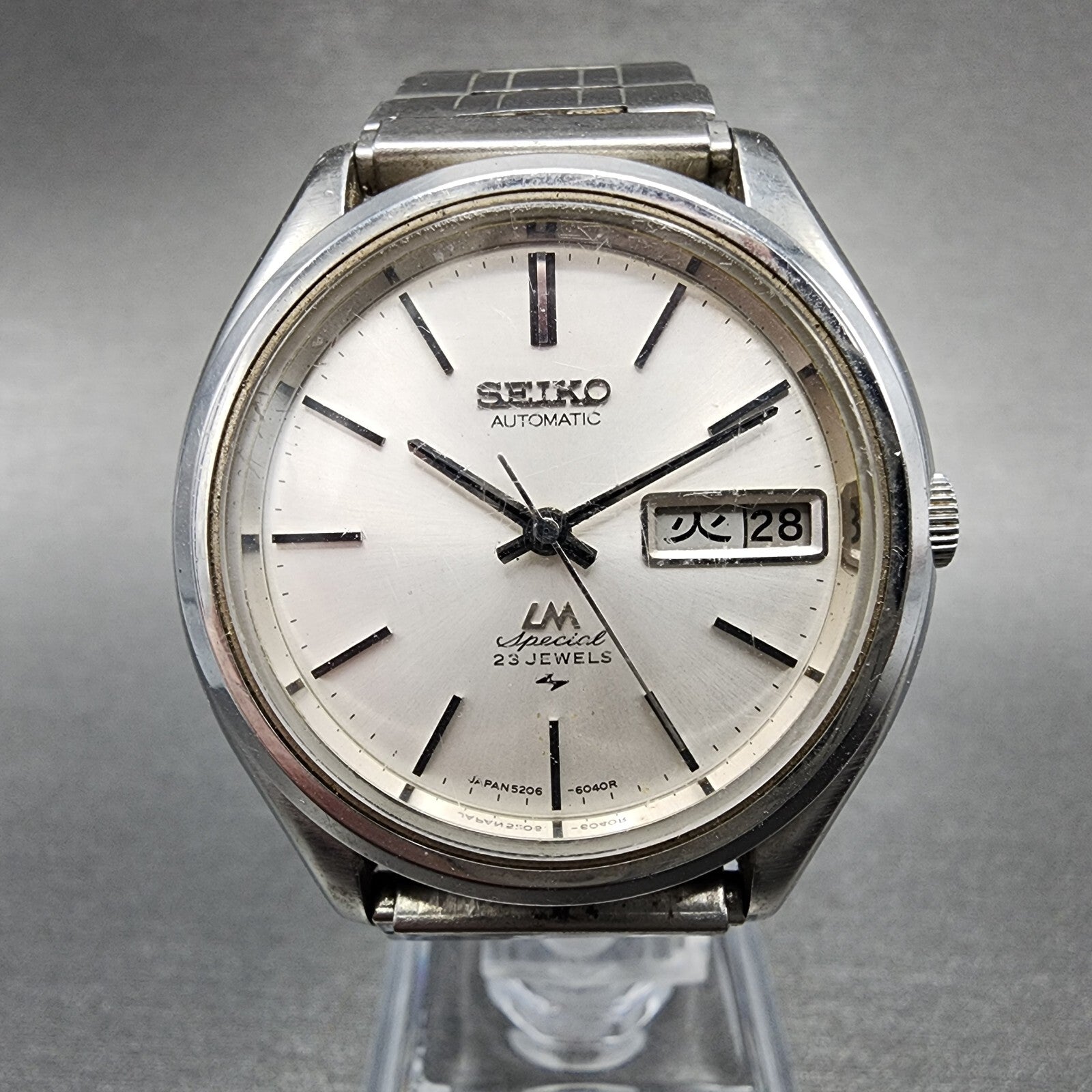 Seiko Lord Matic Special Watch Men 37mm Silver Dial Steel Daydate 5206-6061 Runs