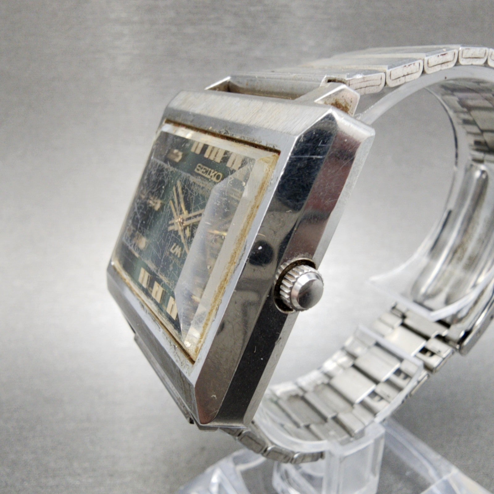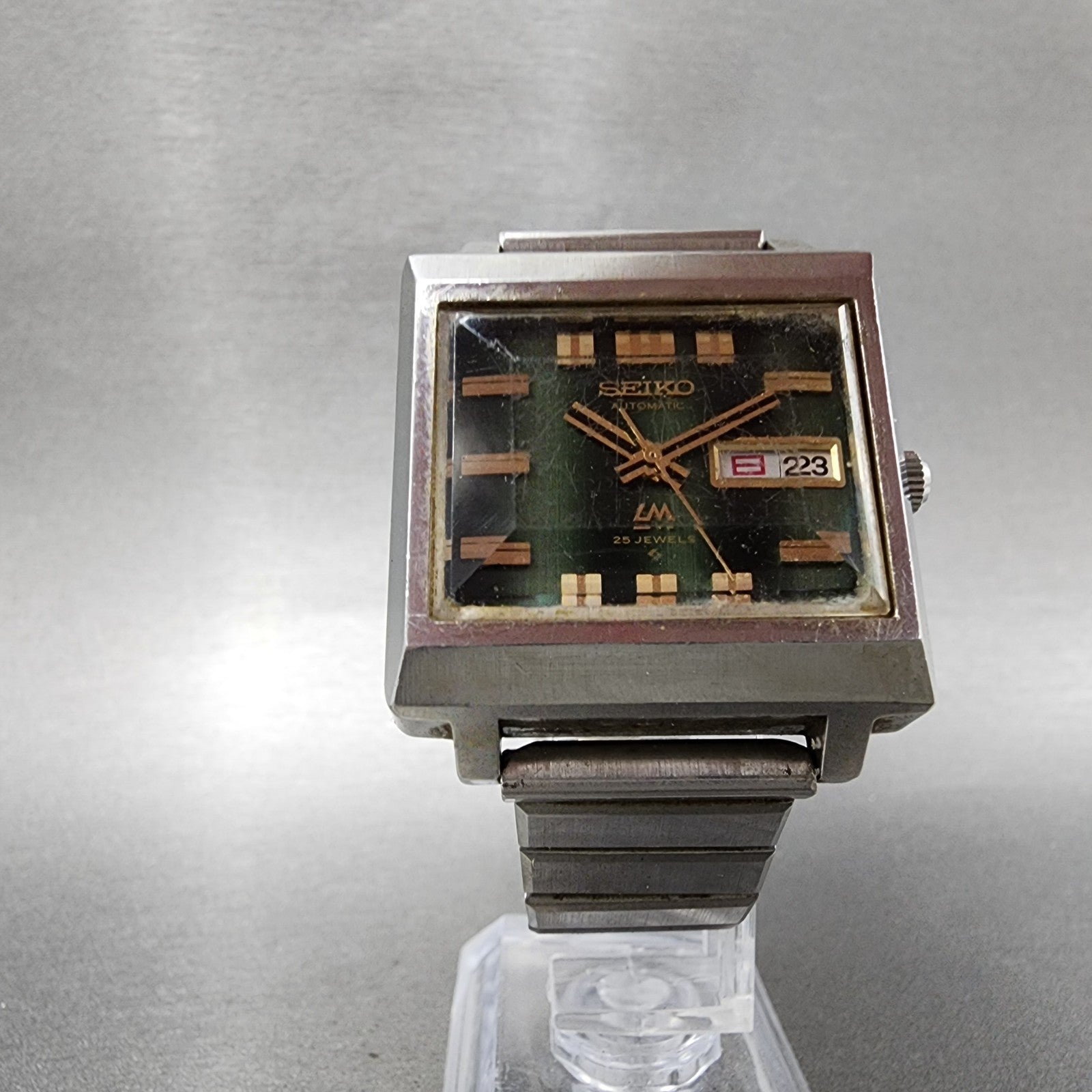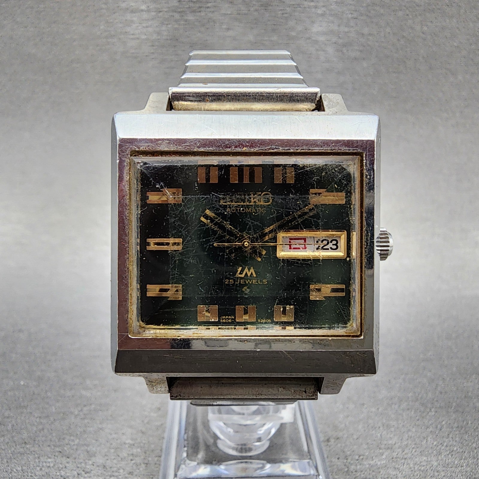 Seiko Lord Matic Watch Men 34mm Green Dial Silver Tone Daydate 5606-5080 Runs