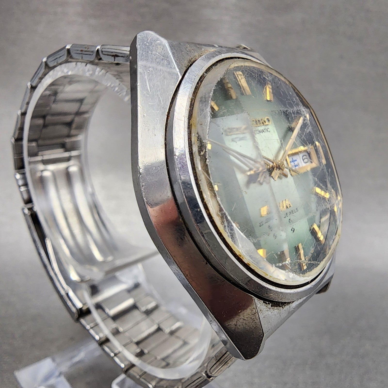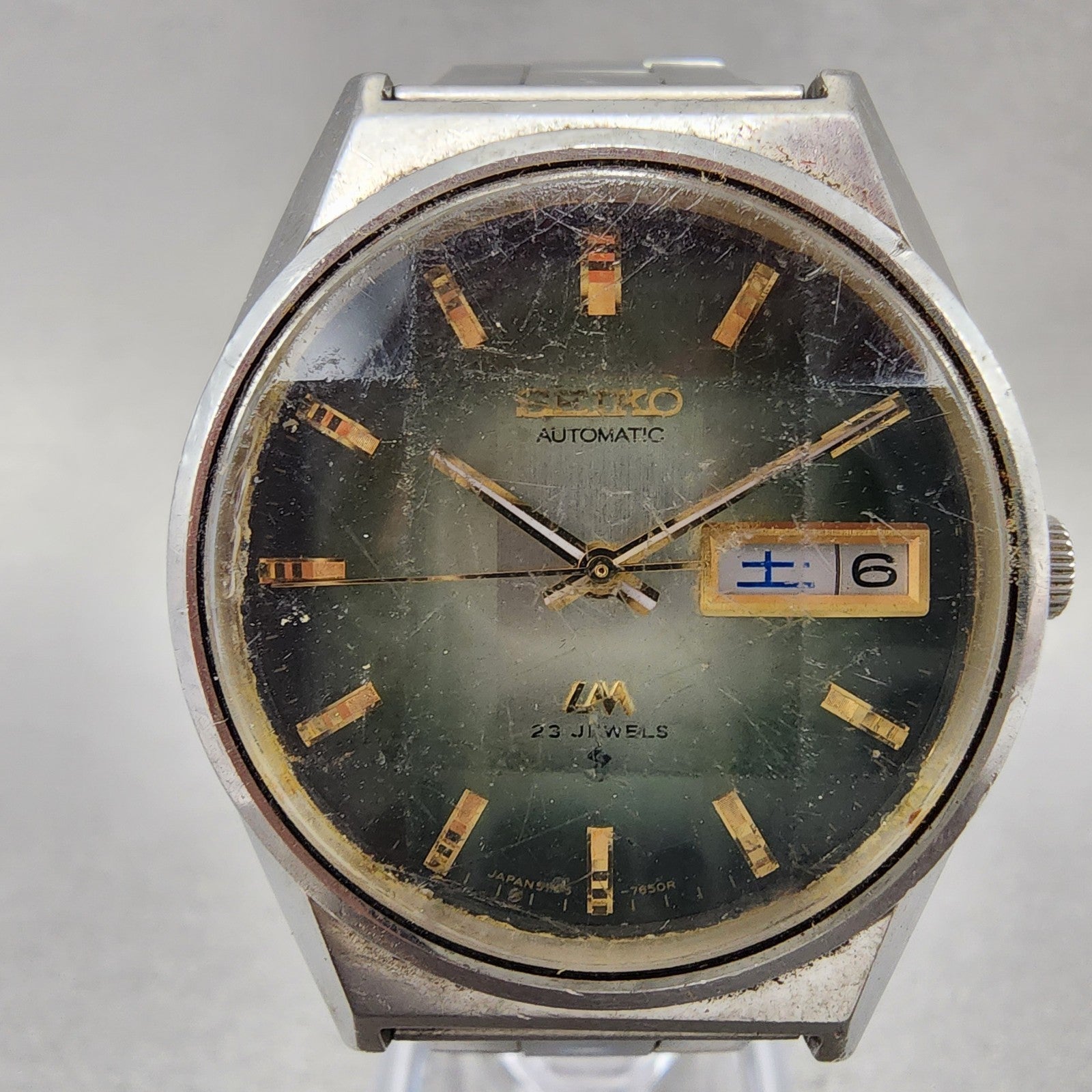 Seiko Lord Matic Watch Men 36mm Green Dial Silver Tone Daydate 5606-7310 Runs