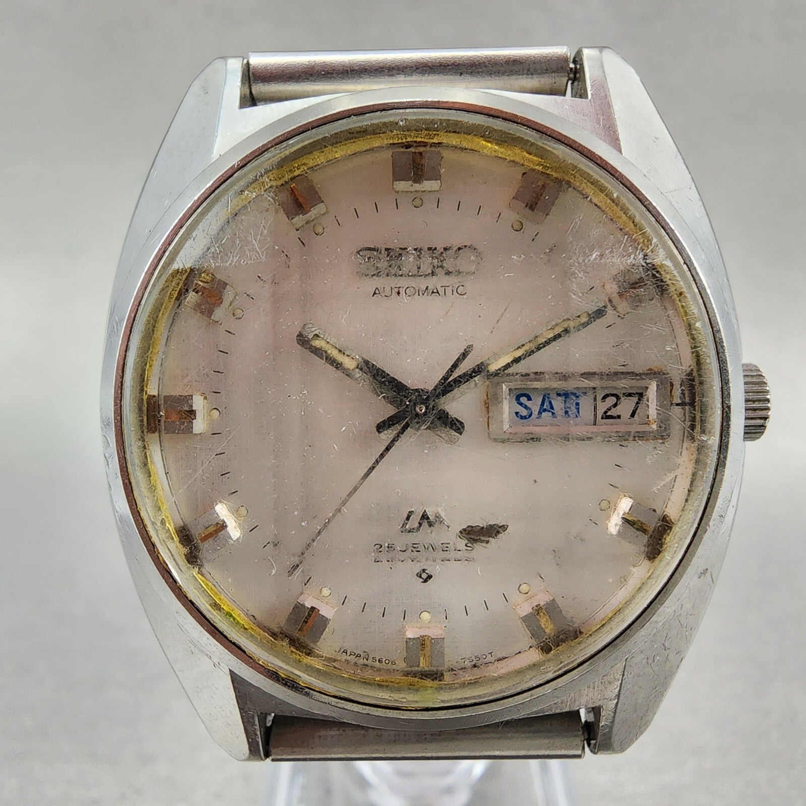Seiko Lord Matic Watch Men 36mm Silver Dial Silver Tone Daydate 5606-7230 Runs