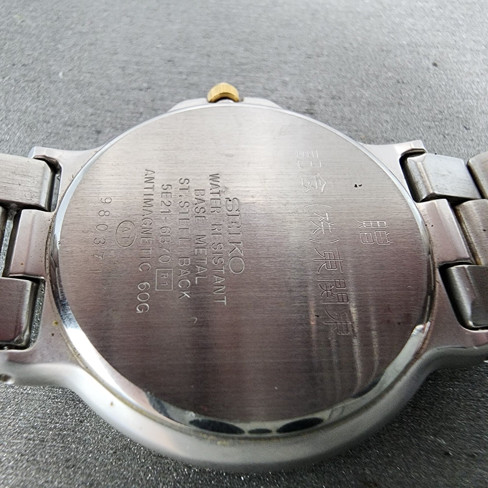 Seiko Lucent Watch Men 31mm Cream Dial Two Tone Round 5E21-6B70 New Battery