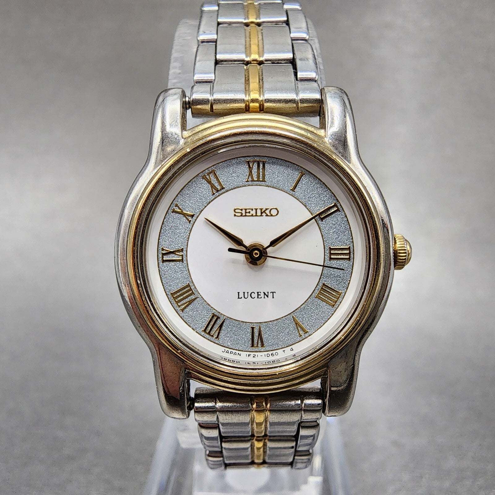 Seiko Lucent Watch Women 22mm White Dial Two Tone Round 1f21-0j80 New Battery