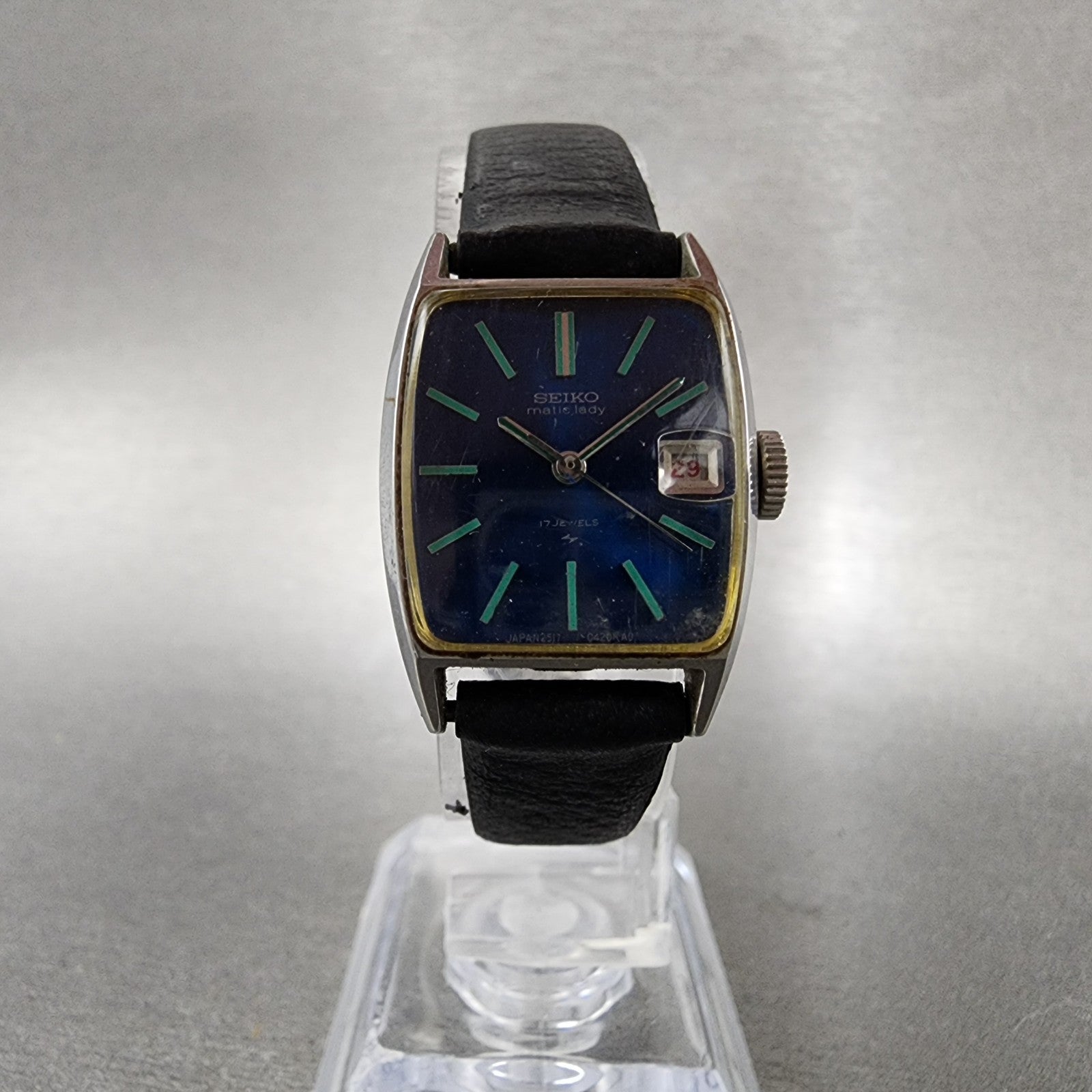 Seiko Matic Lady Tank Watch Women 20mm Blue Dial Steel Date 2517-3211 PARTS