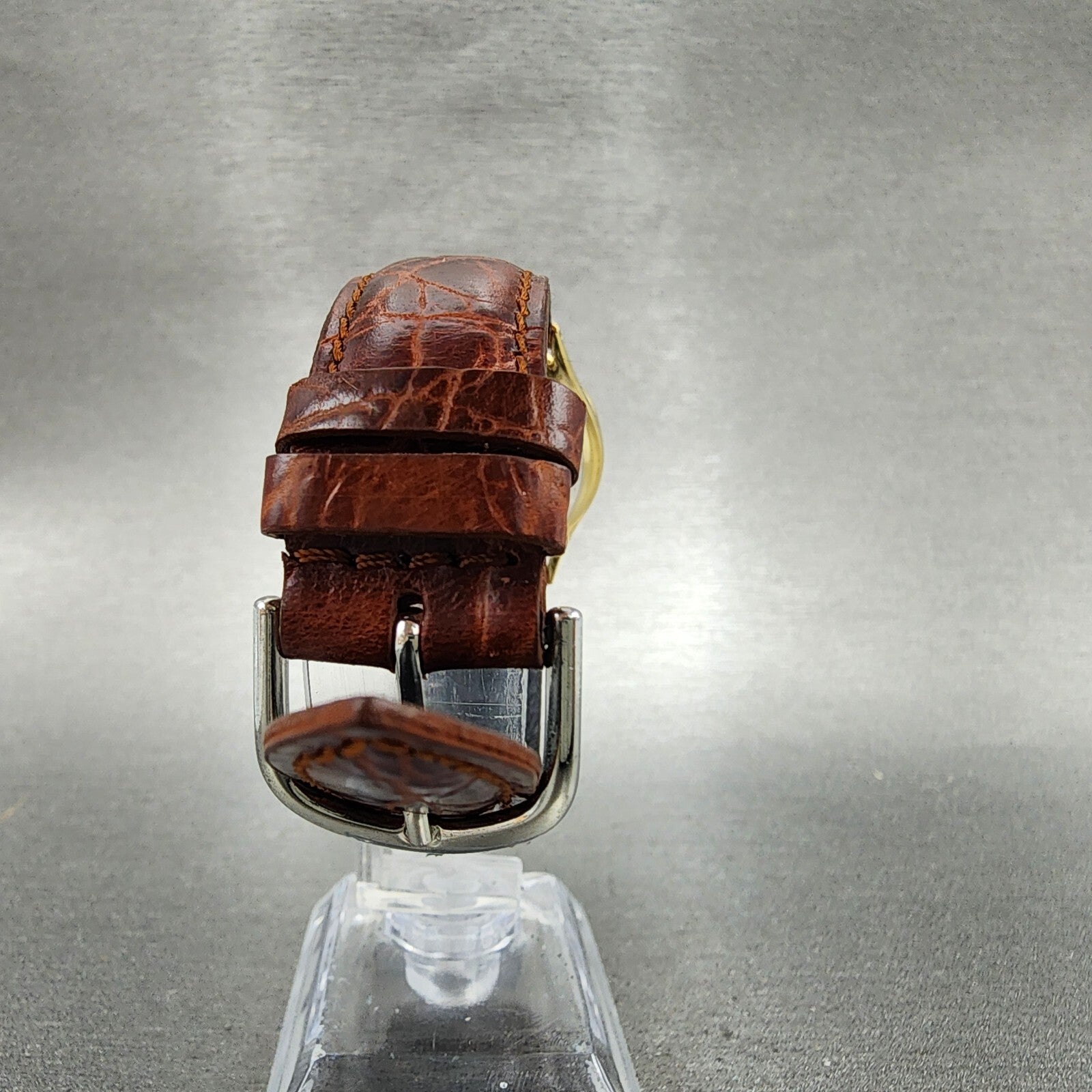 HAS A NEW BATTERY SECONDS HAND TICKS BUT MINUTE AND HOUR HANDS DO NOT MOVE BUT ARE ABLE TO BE SET. This item has been used and has scratchers on the case and crystal. The watch does not work and will need to be repaired. A NEW BATTERY WILL NOT FIX IT.