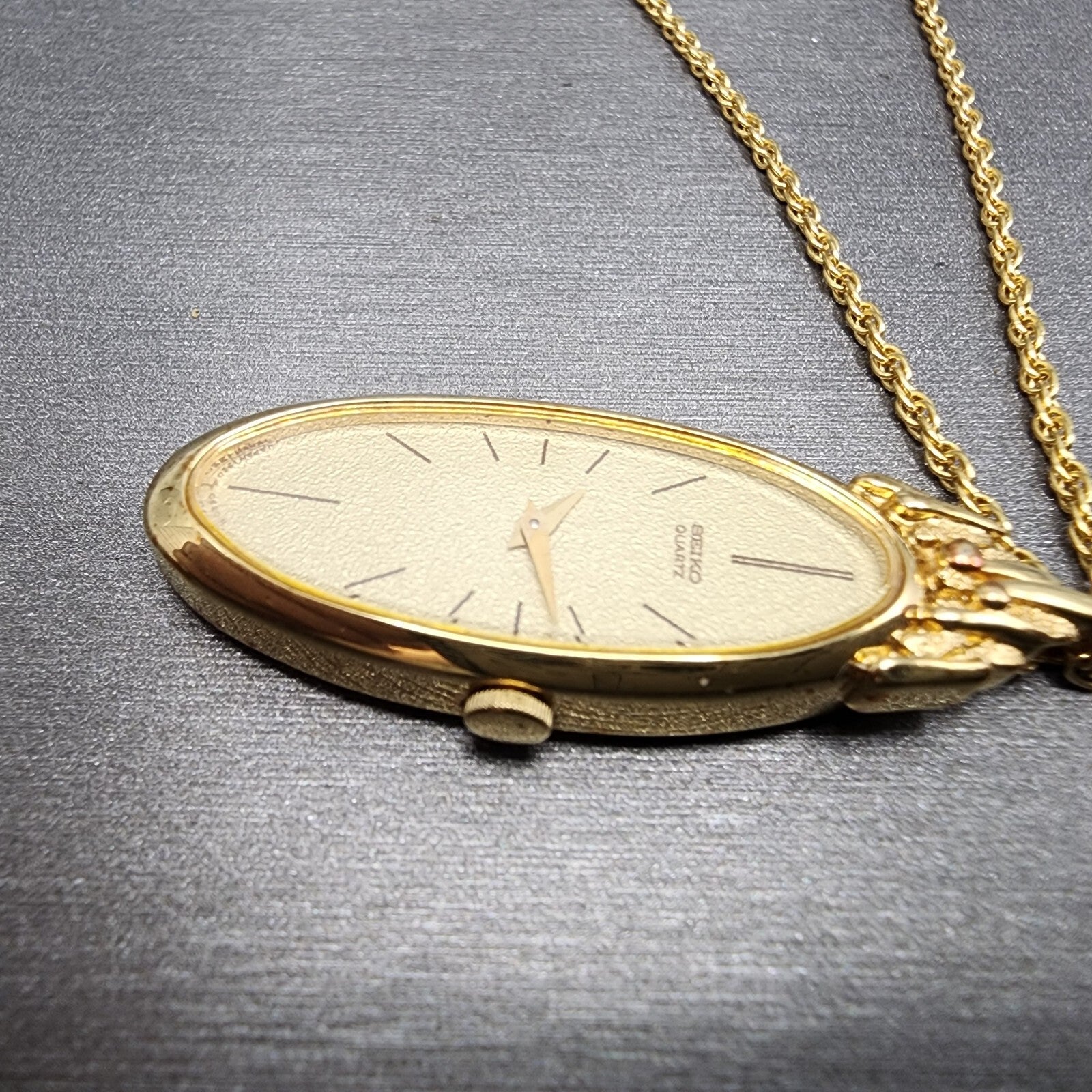 Seiko Necklace Watch Women 15mm Champagne Dial Gold Tone 1320-5520 New Battery