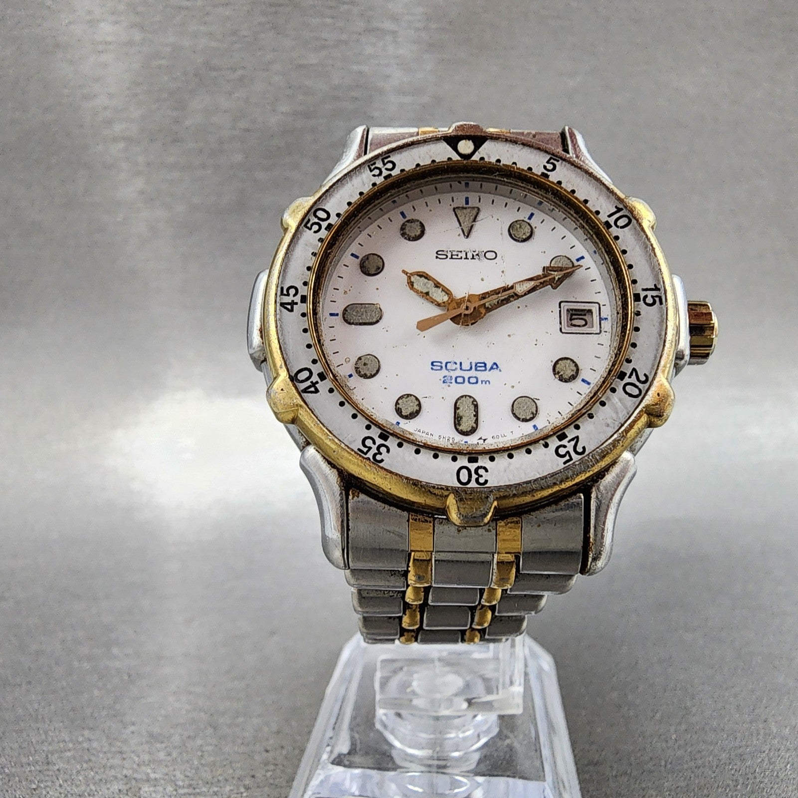 Seiko Scuba Watch Men 38mm White Dial Two Tone Date 5h25-6020 New Battery