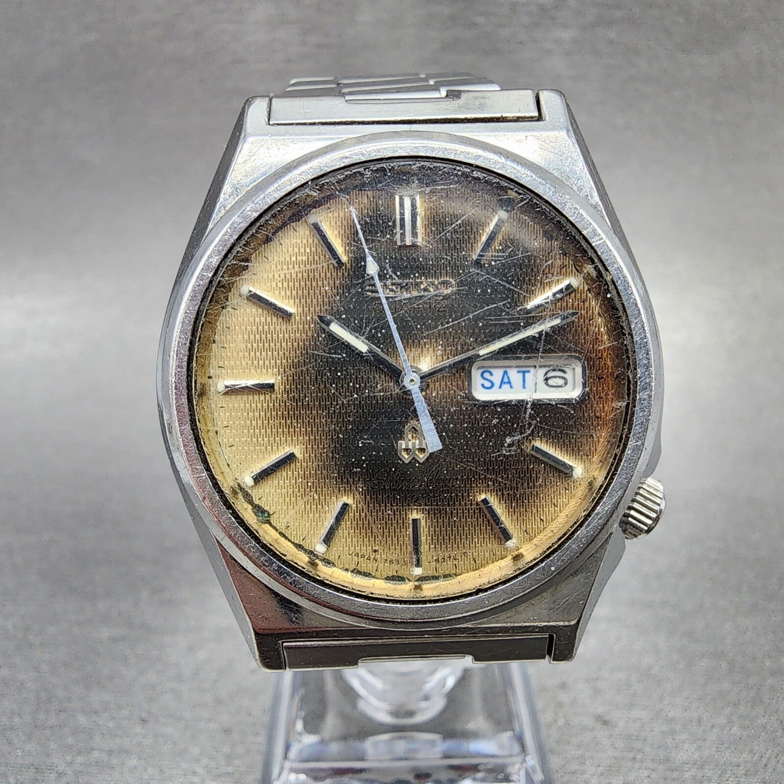 Seiko Silverwave 36mm watch Men Cream Dial Silver Tone Daydate 7546-8340 New Bat
