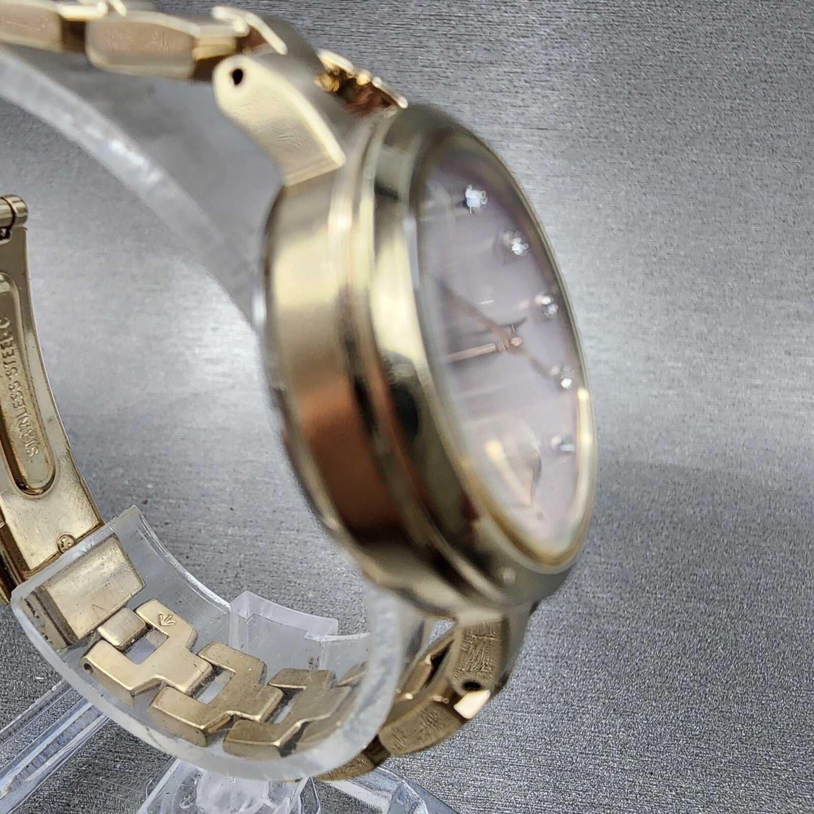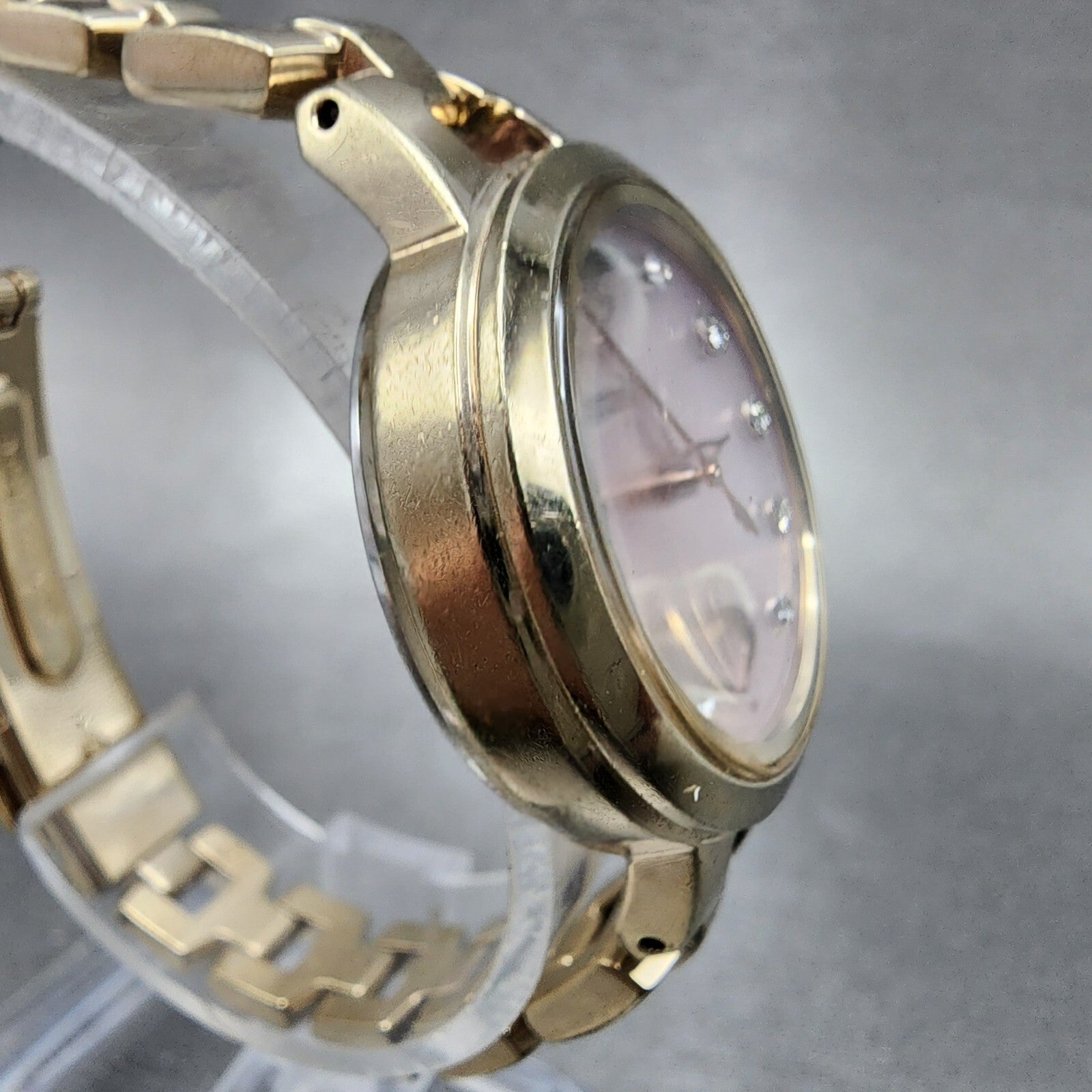 Seiko Solar Atomic Watch Women 27mm Pink Heart Dial Gold Tone 3b51-0ar0 Runs