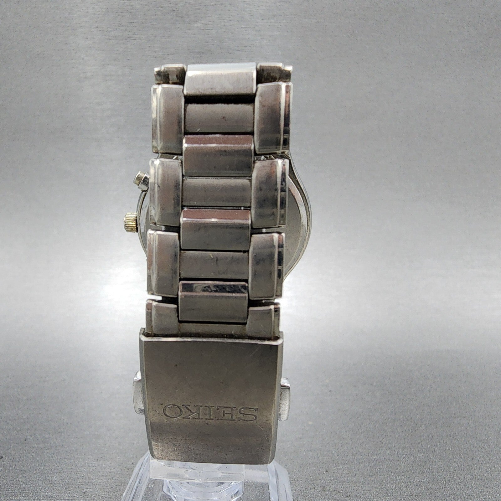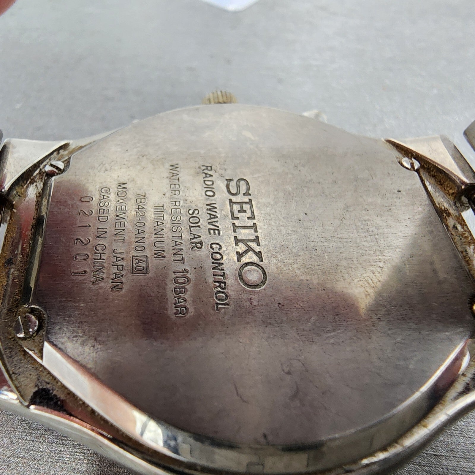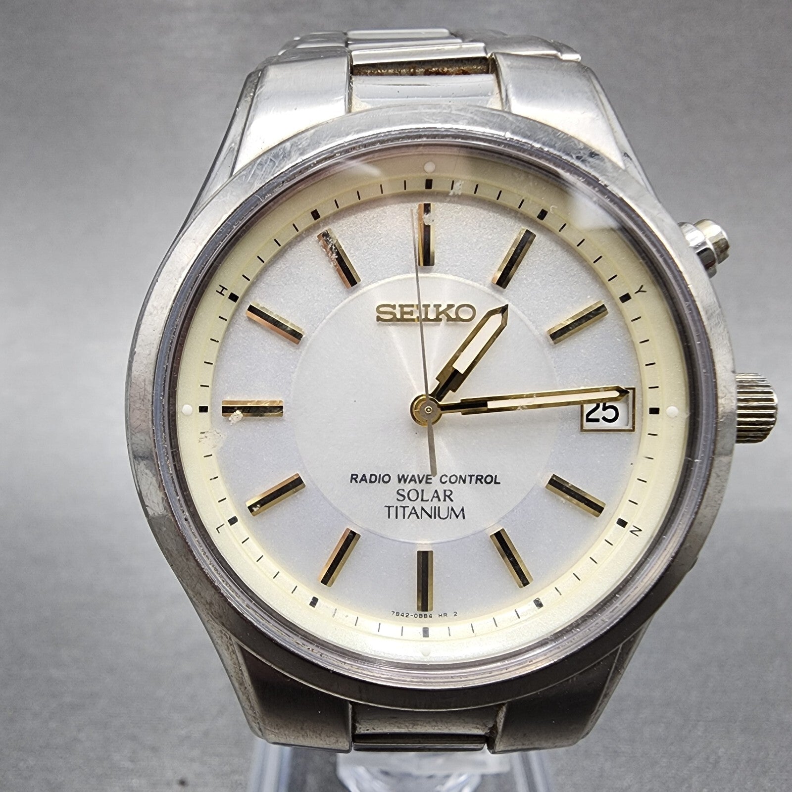 Seiko Solar Titanium Watch Men 38mm Silver Dial Date Round 7b42-0an0 Runs