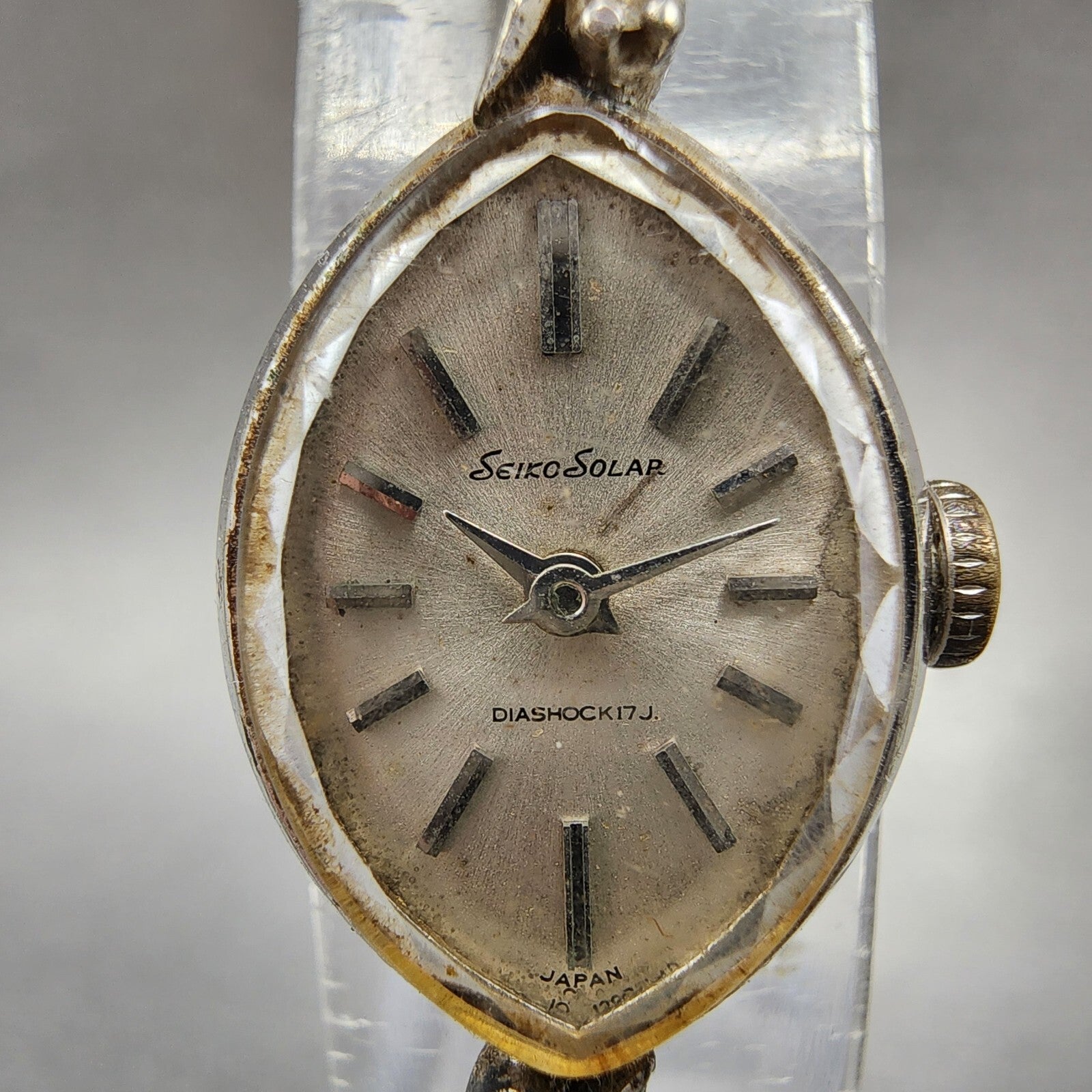 Seiko Solar Watch Women 15mm White Dial Silver Tone Oval 10-8090