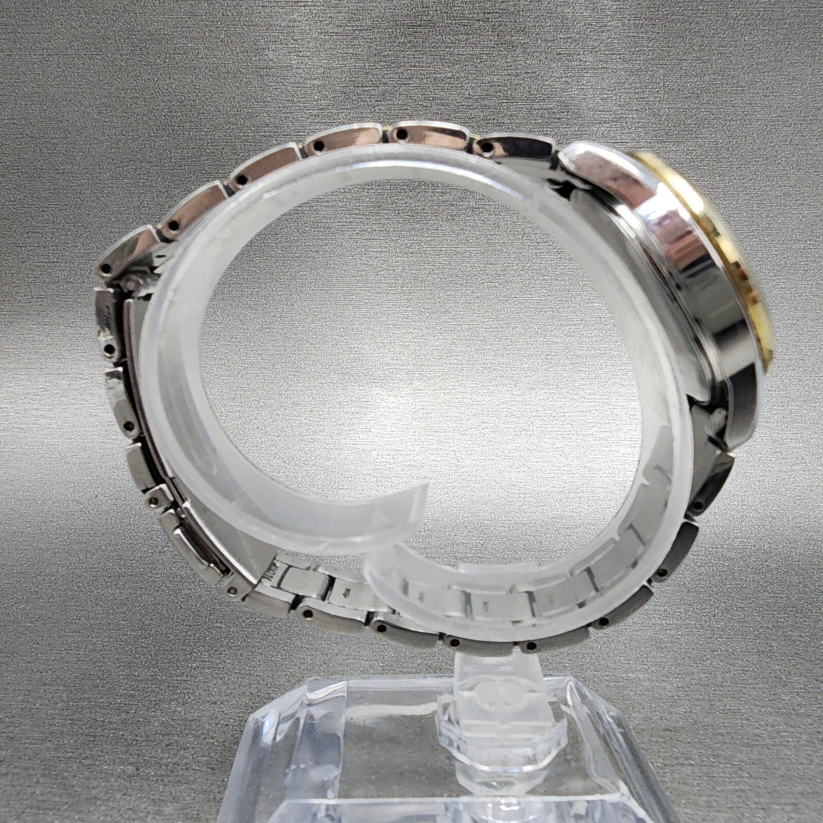 THE DAYDATE IS NOT PROPERLY ALIGNED IN THE WINDOW AND THE QUICK SET FUNCTION DOES NOT WORK. This watch has been used but is in good working condition. There is scratches on the watch. please refer to pictures.
