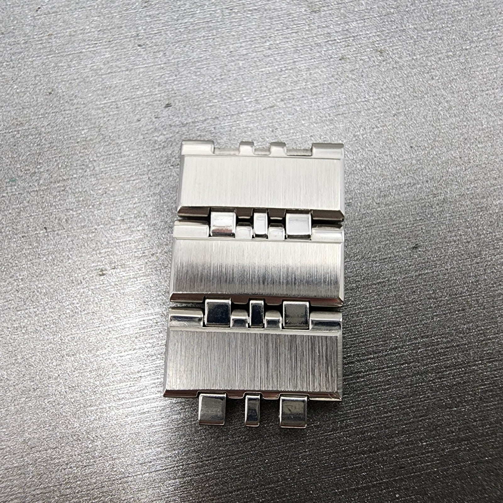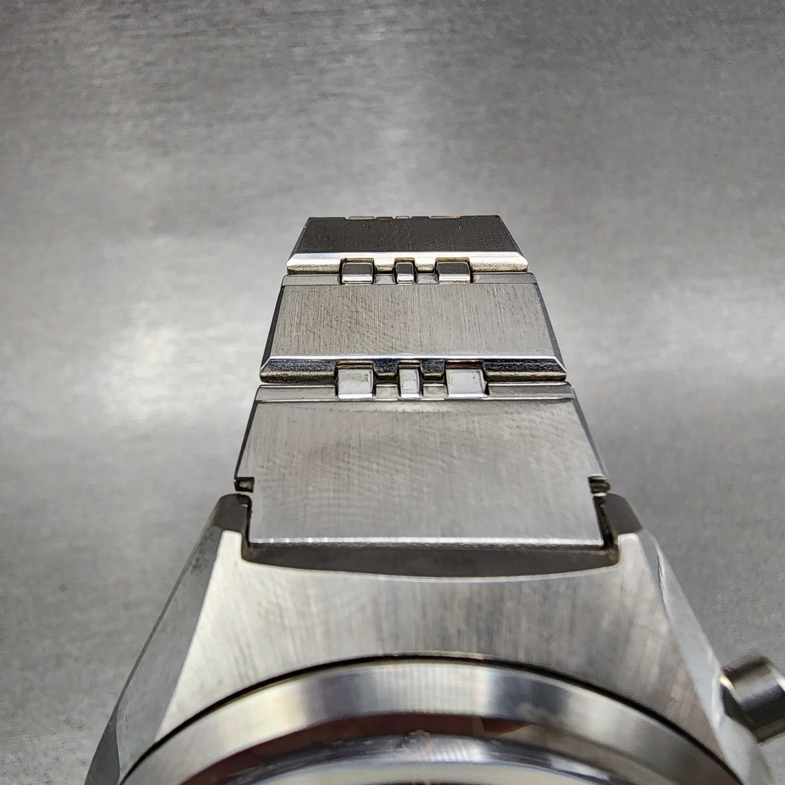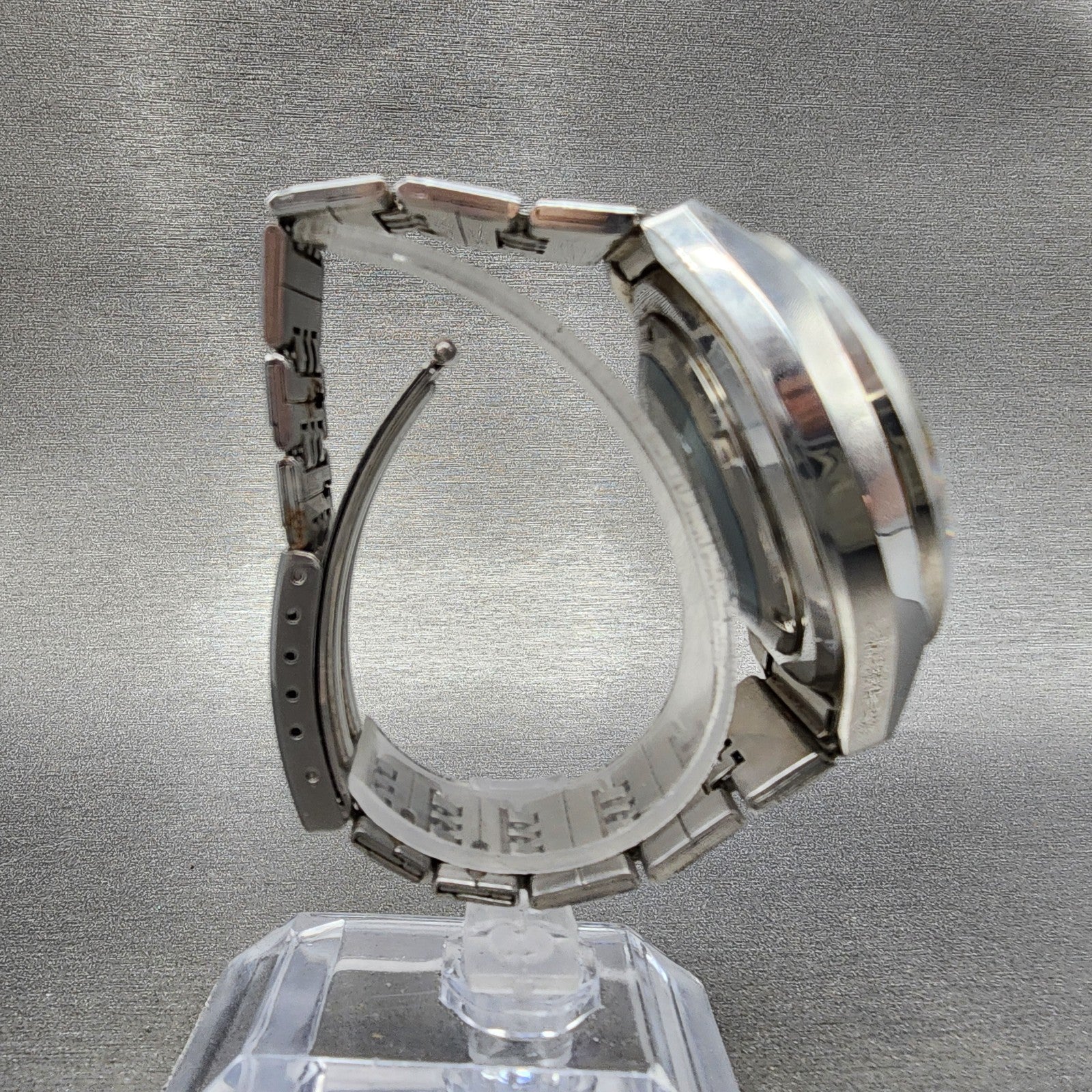 This watch has been worn but is in excellent working condition. There is three extra links included that can make the watch fit up to a 7.4 inch wrist.
