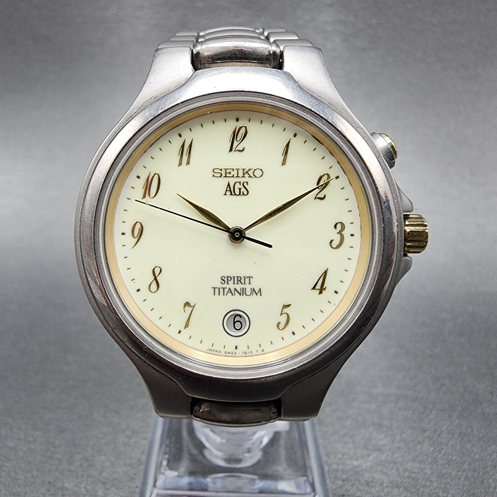 Seiko Spirit AGS Watch Men 37mm Luminous Dial Titanium Date 5m22-7B80 PARTS