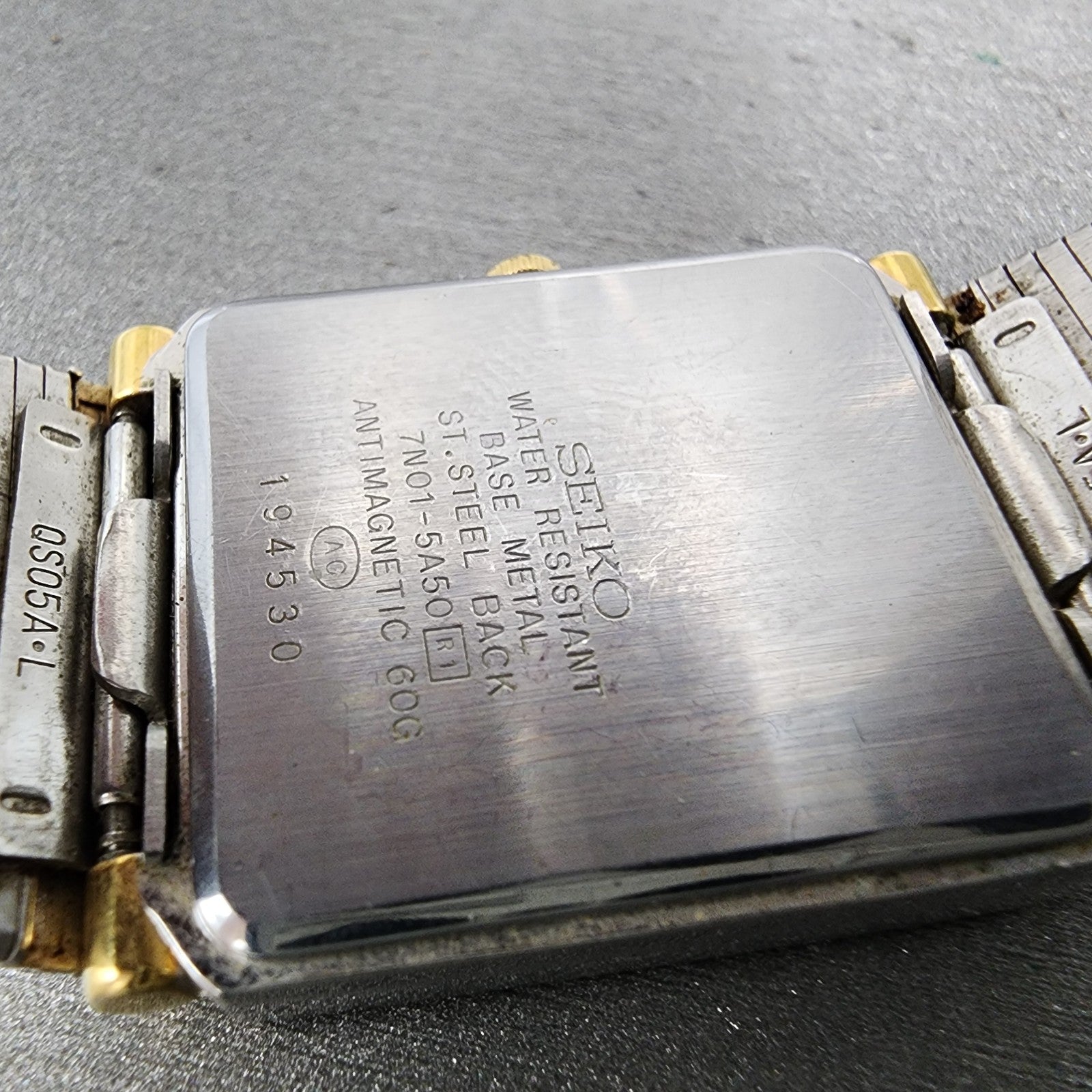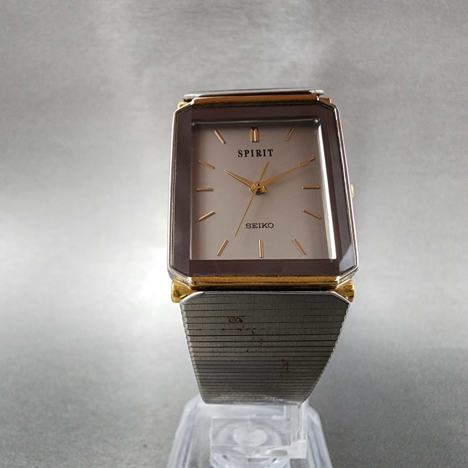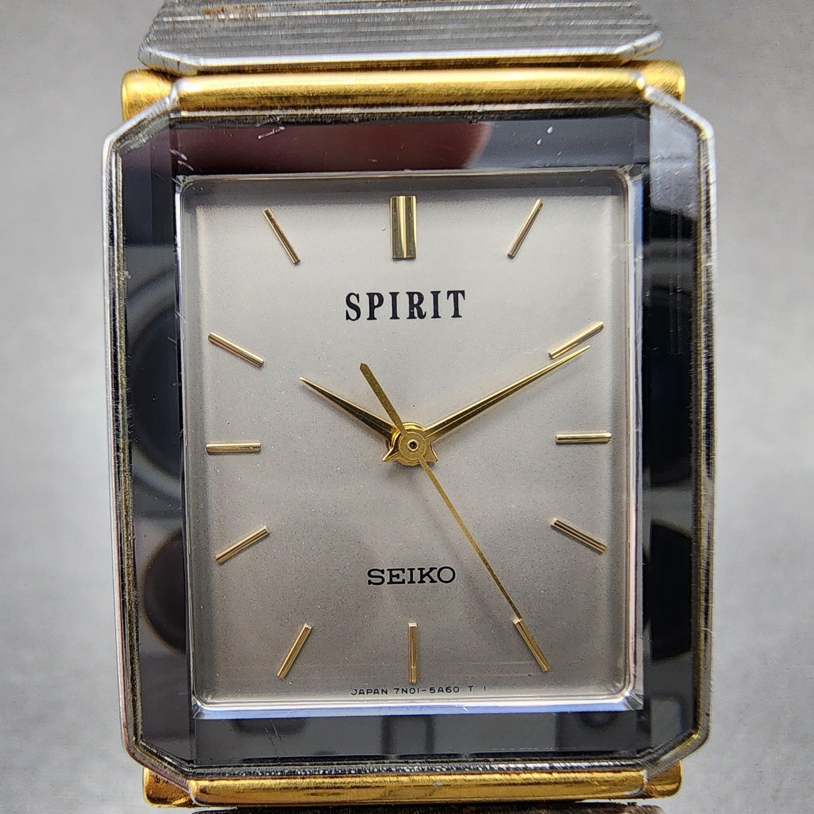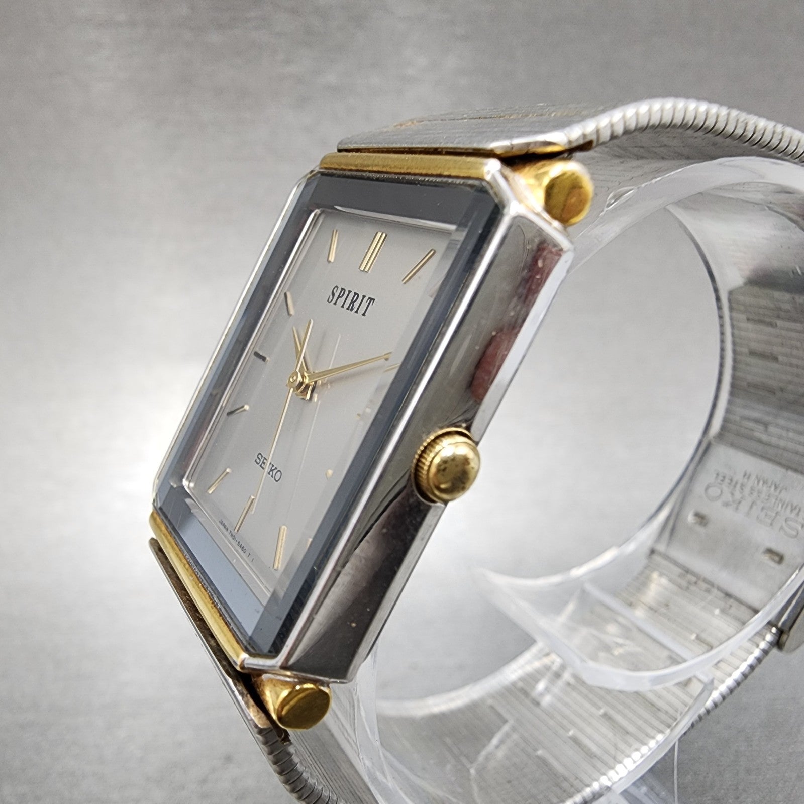 Seiko Spirit Tank Watch Men 25mm Gray Dial Two Tone 7n01-5a50 New Battery