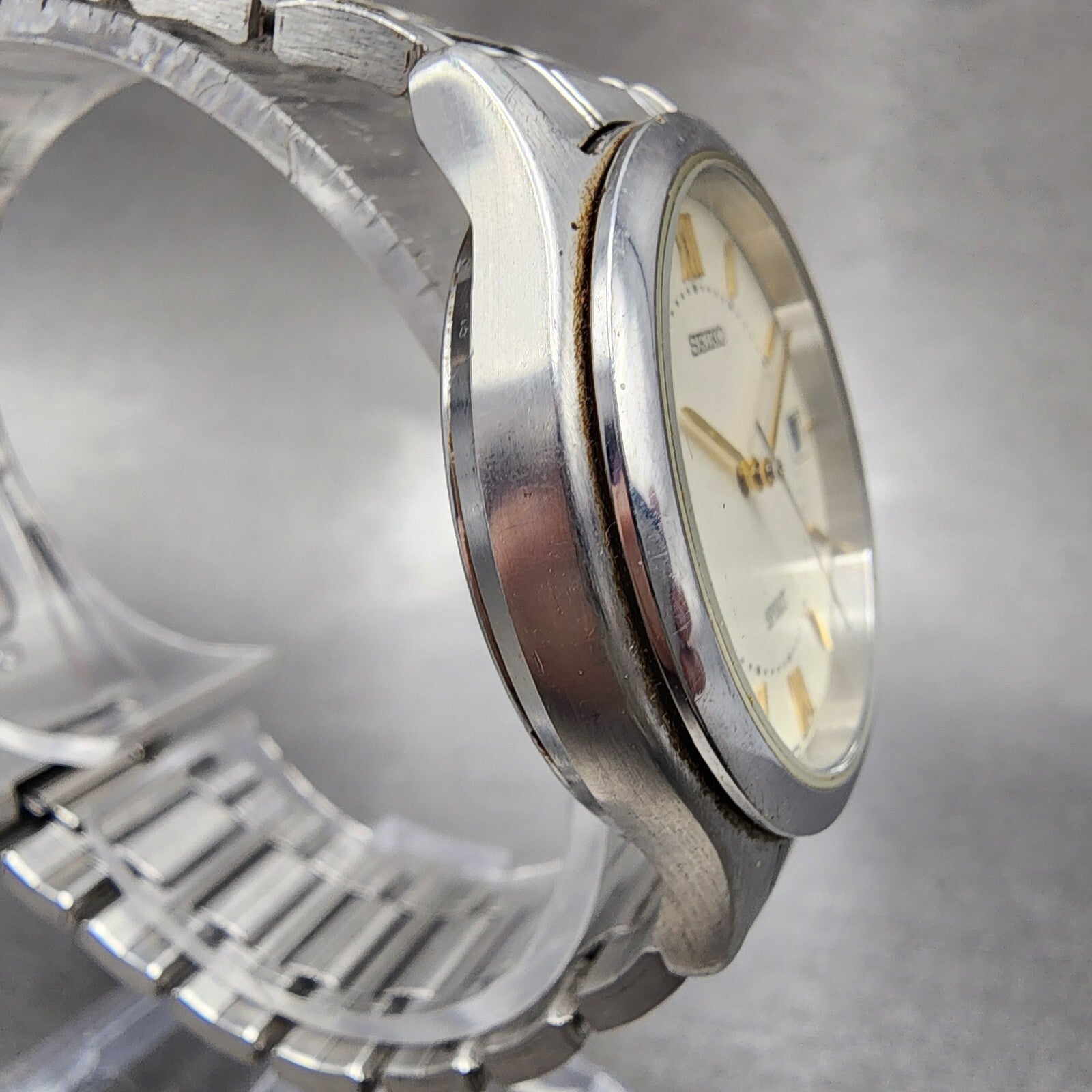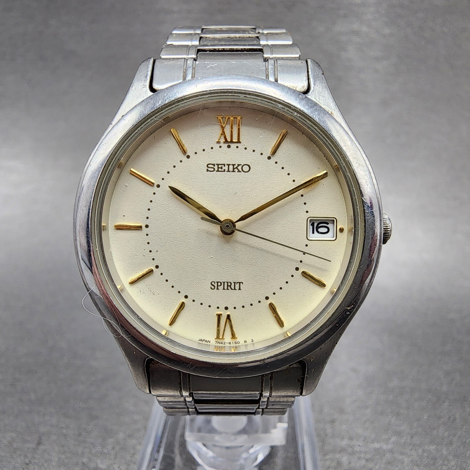 Seiko Spirit Watch Men 34mm Cream Dial Silver Tone Date 7n42-6110 New Battery