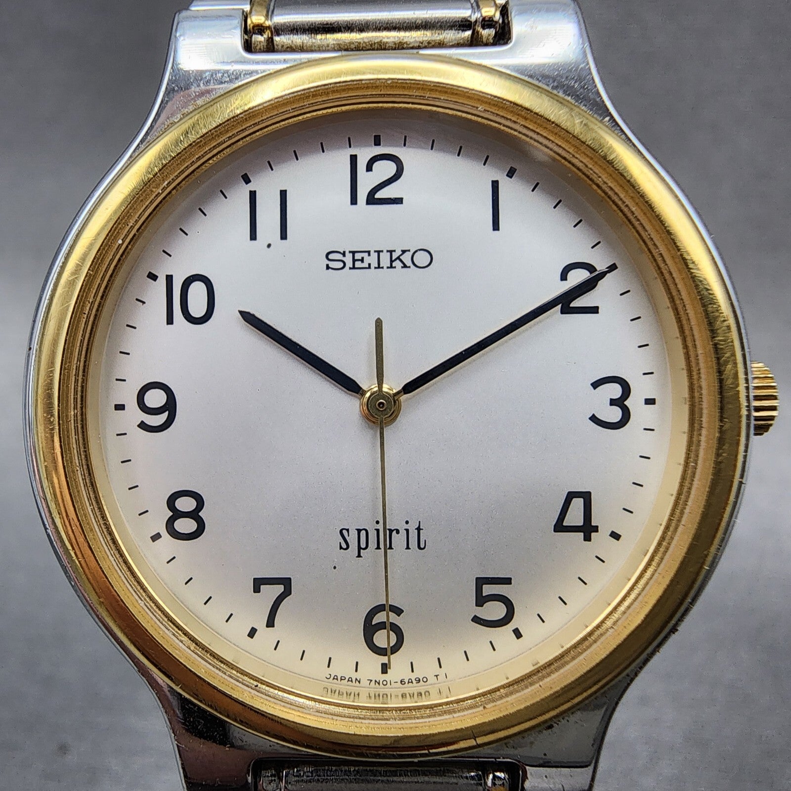 Seiko Spirit Watch Men 34mm Silver Dial two Tone Round 7n01-6a70 New Battery