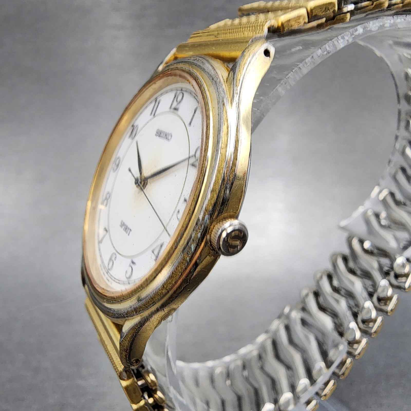 Seiko Spirit Watch Men 34mm White Dial Gold Tone 5s21-6a50 New Battery
