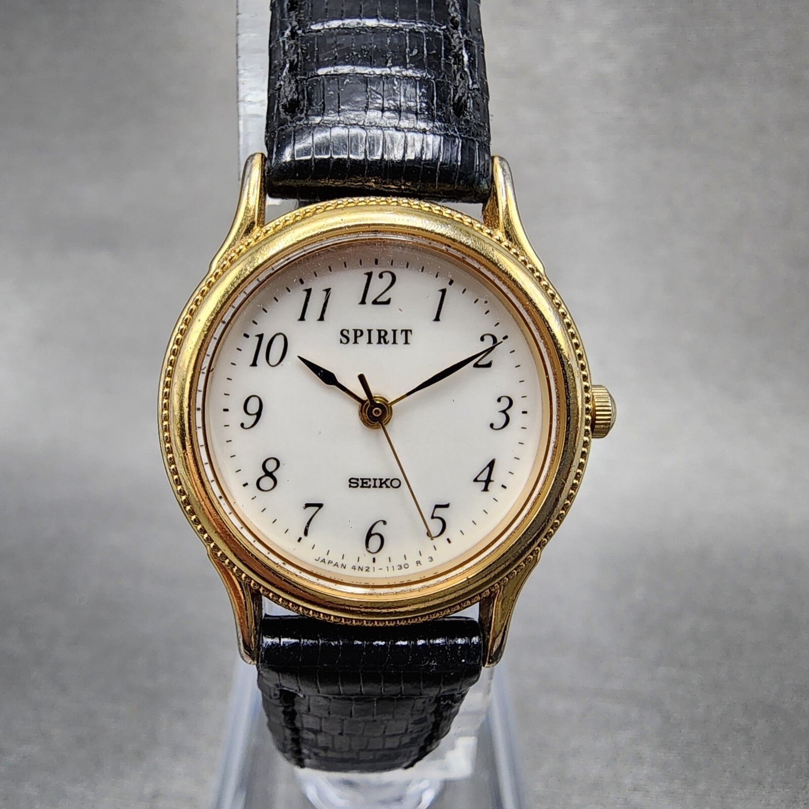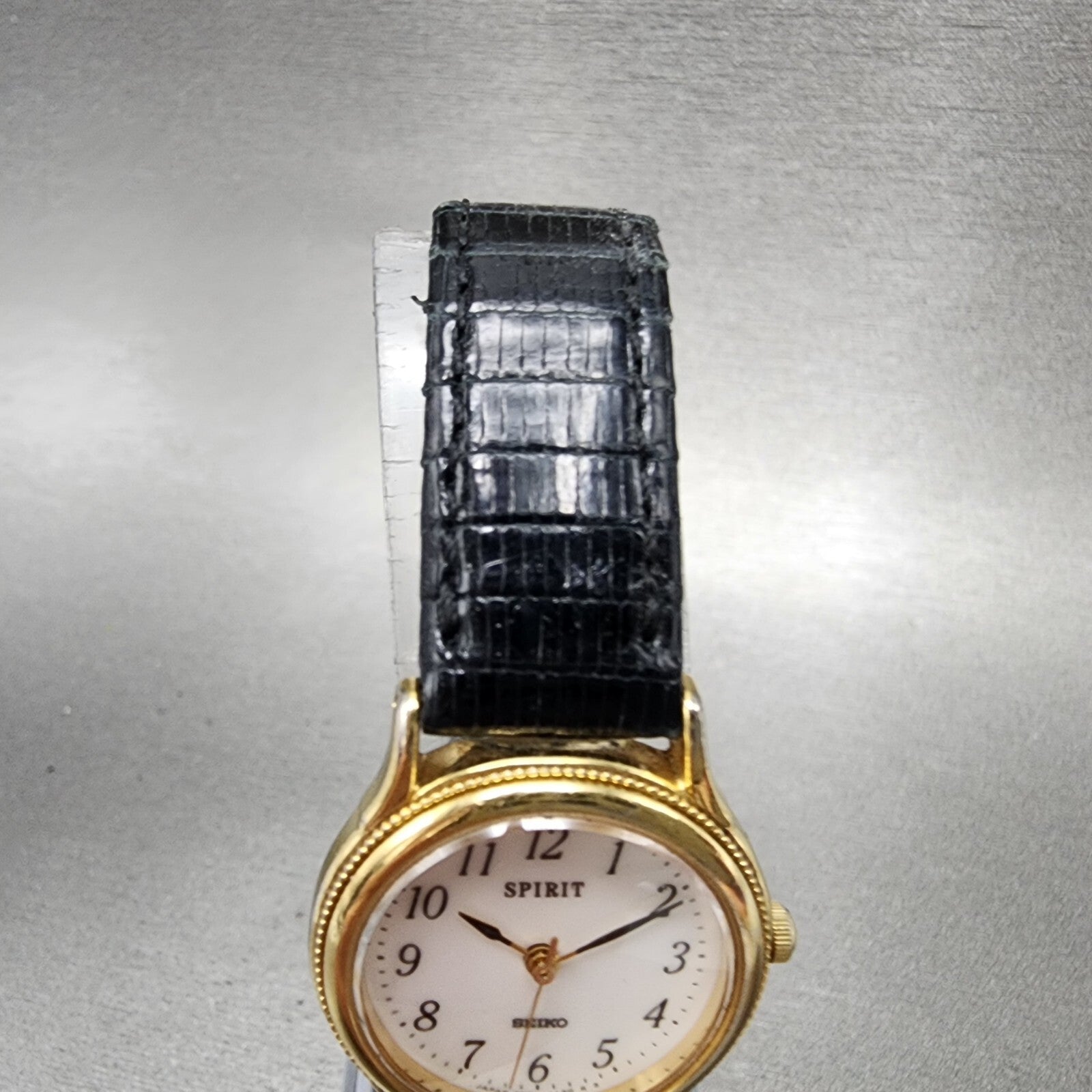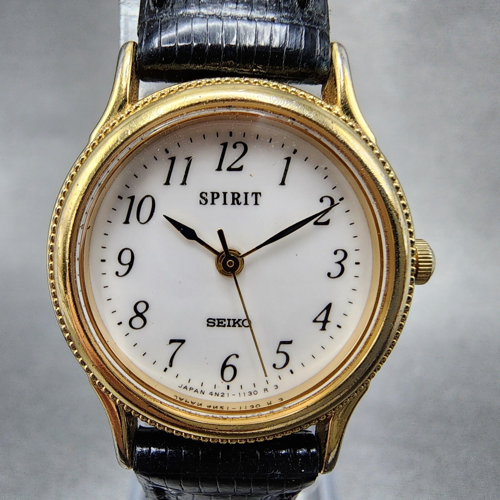 Seiko Spirit Watch Women 23mm White Dial Gold Tone Round 4N21-058A New Battery