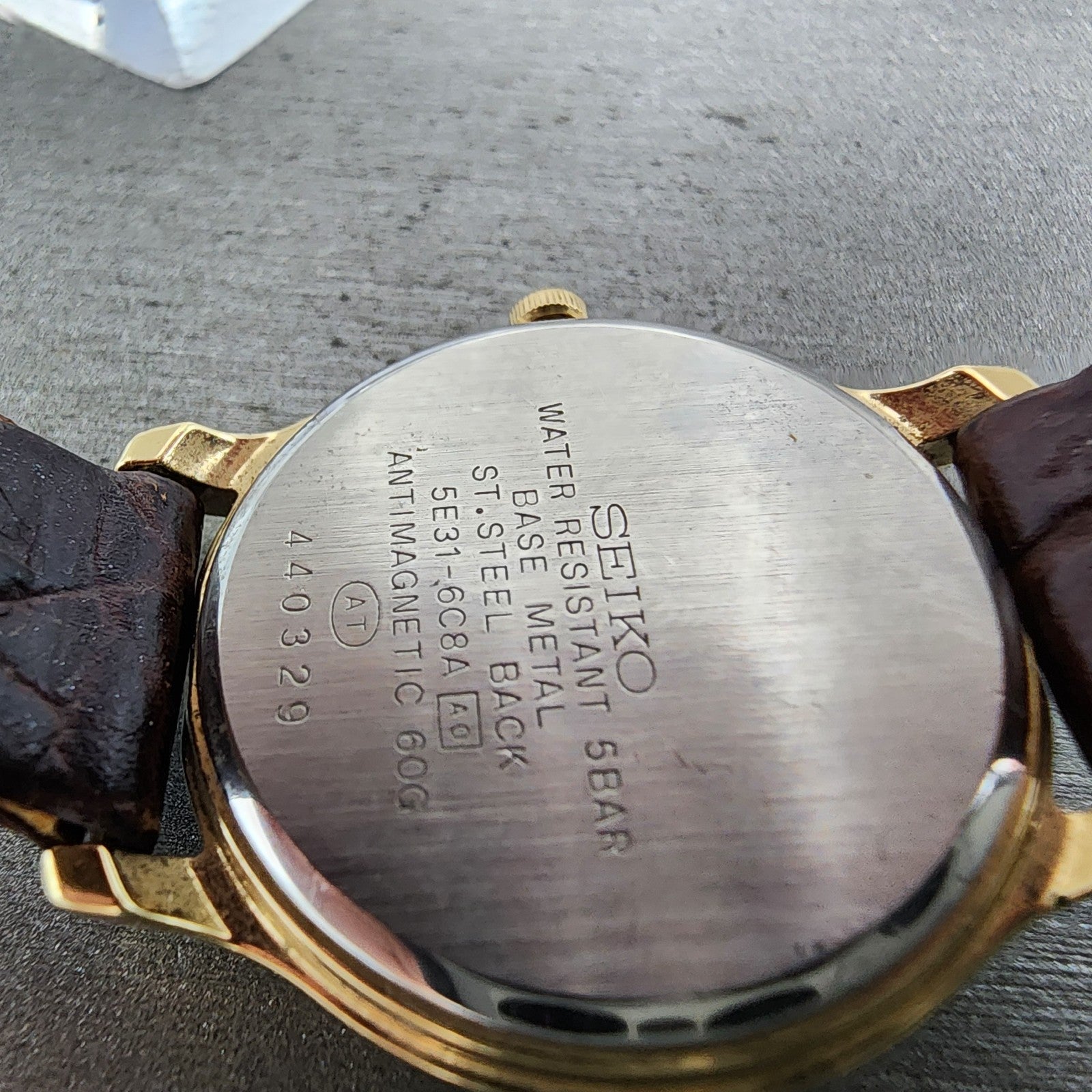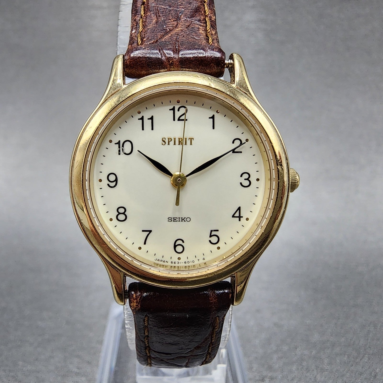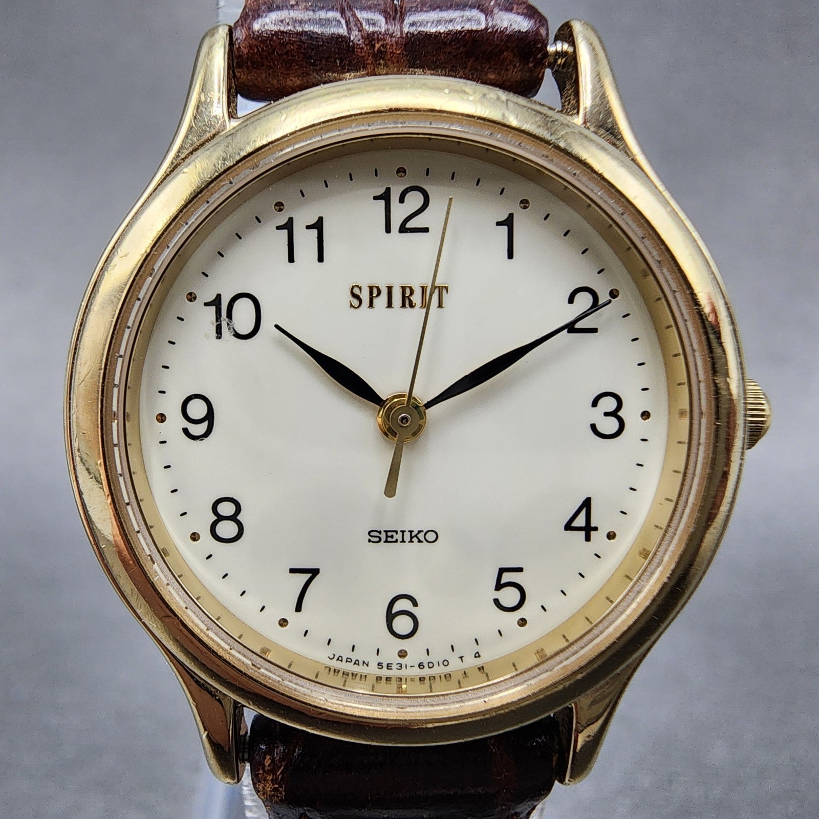 Seiko Spirit Watch Women 27mm White Dial Gold Tone 5e31-6c8a New Battery