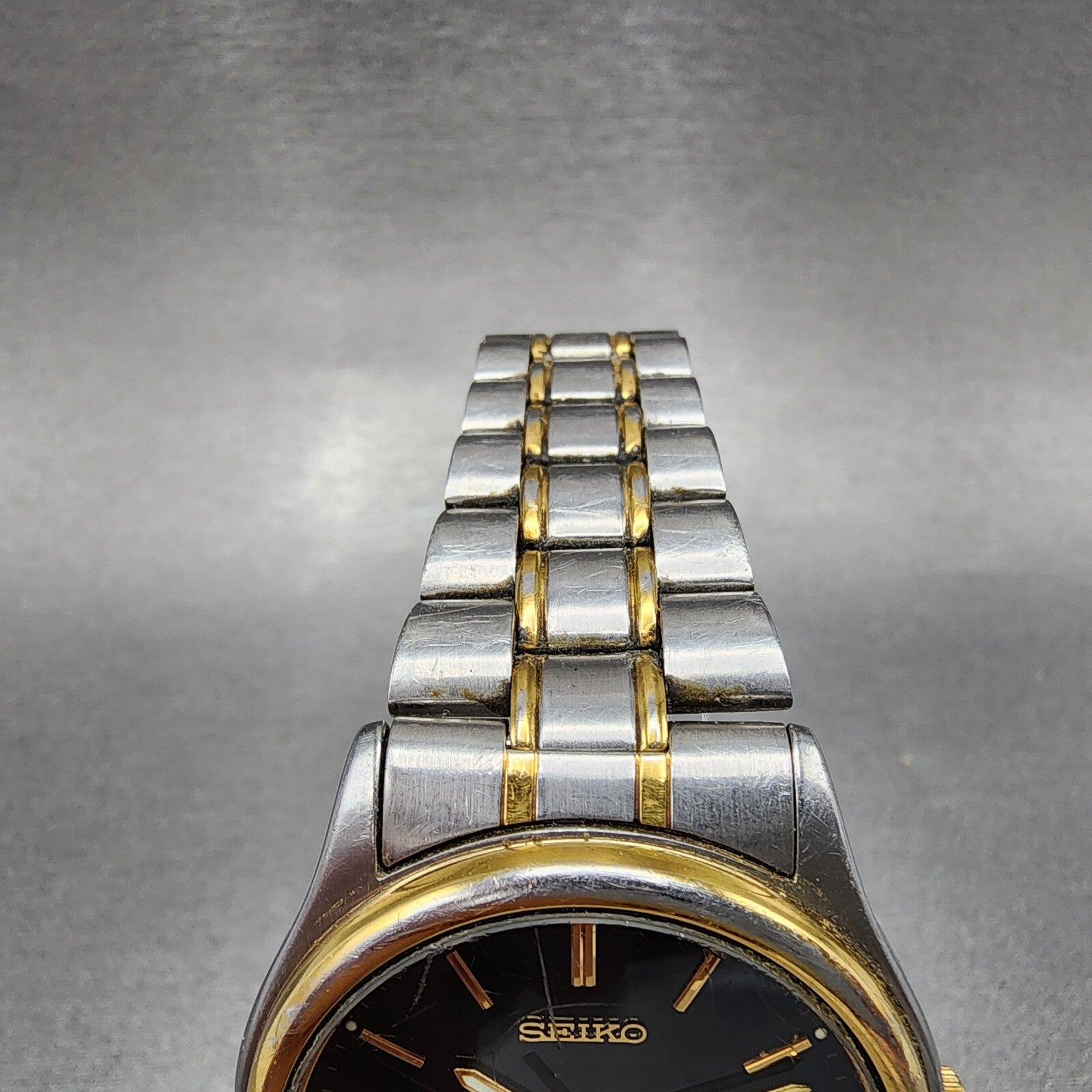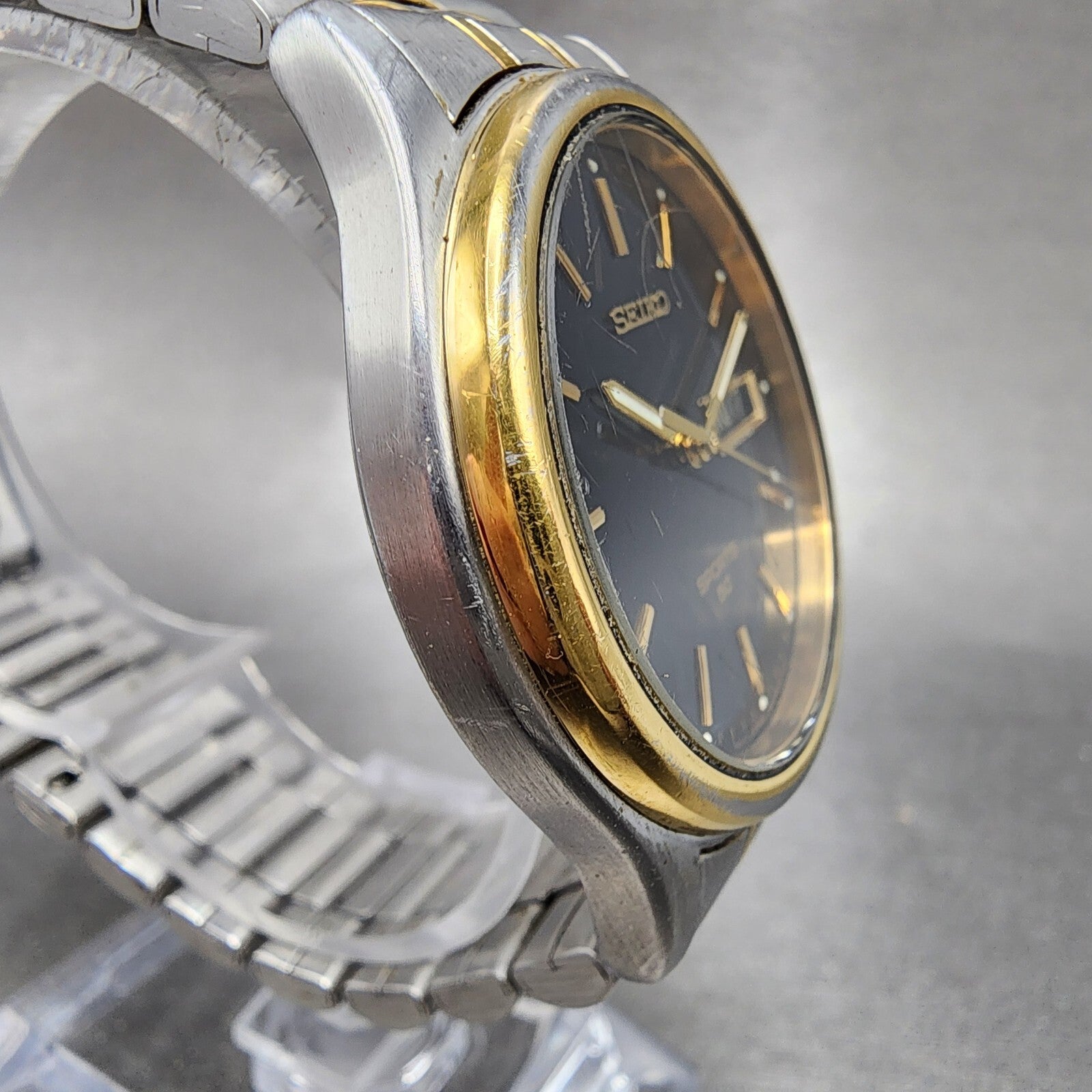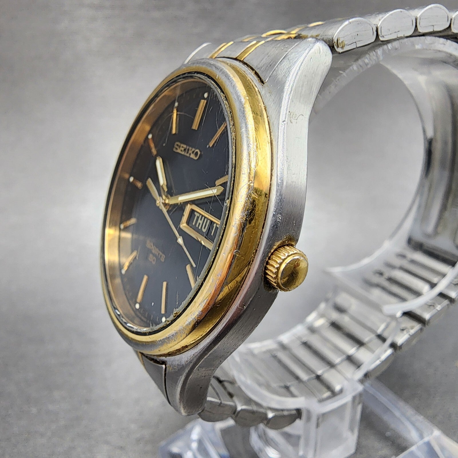 Seiko Sport 50 Watch Men 37mm Black Dial Two Tone Daydate 7n43-9a00 New Battery
