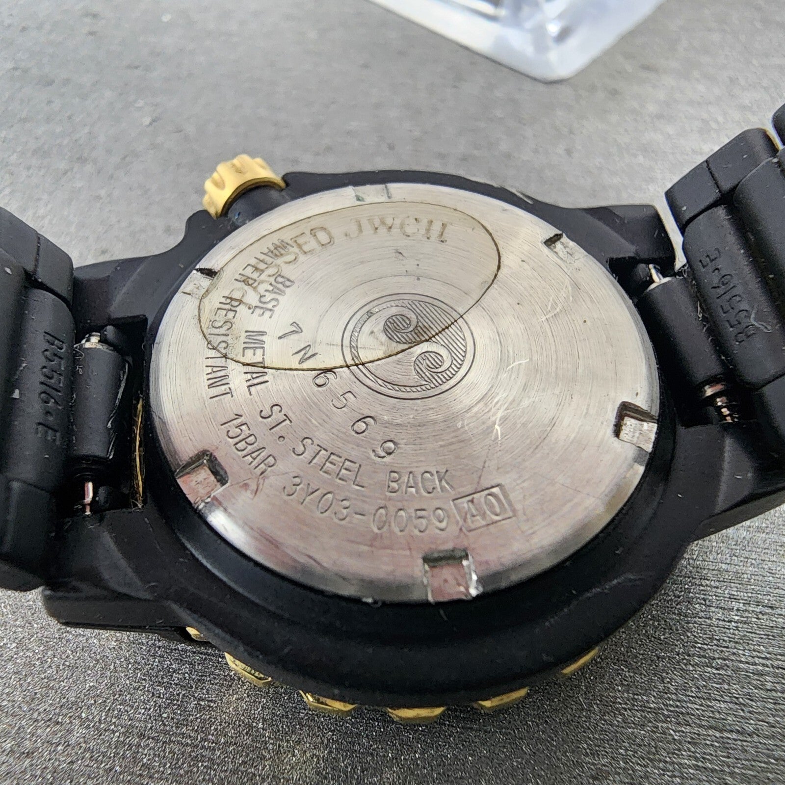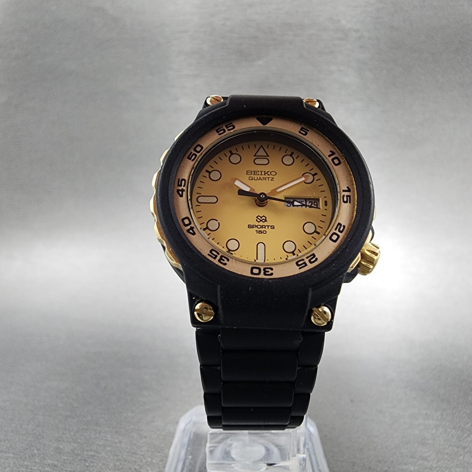 Seiko Sports 150 Watch Women 29mm Gold Dial Black Tone Daydate Round New Batt