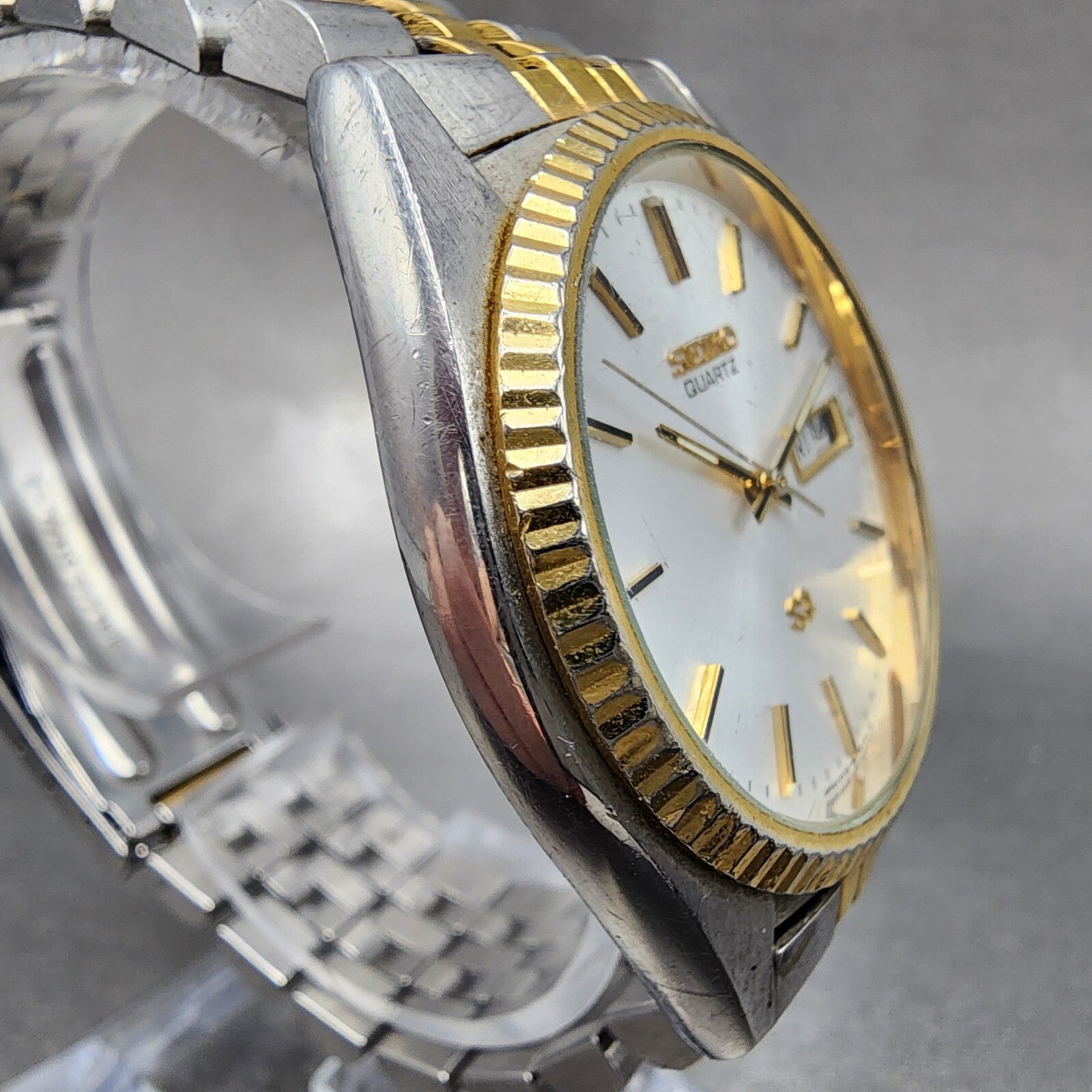 Seiko SQ President Watch Men 37mm Silver Dial Two Tone Daydate 5y23-8a69 New Bat