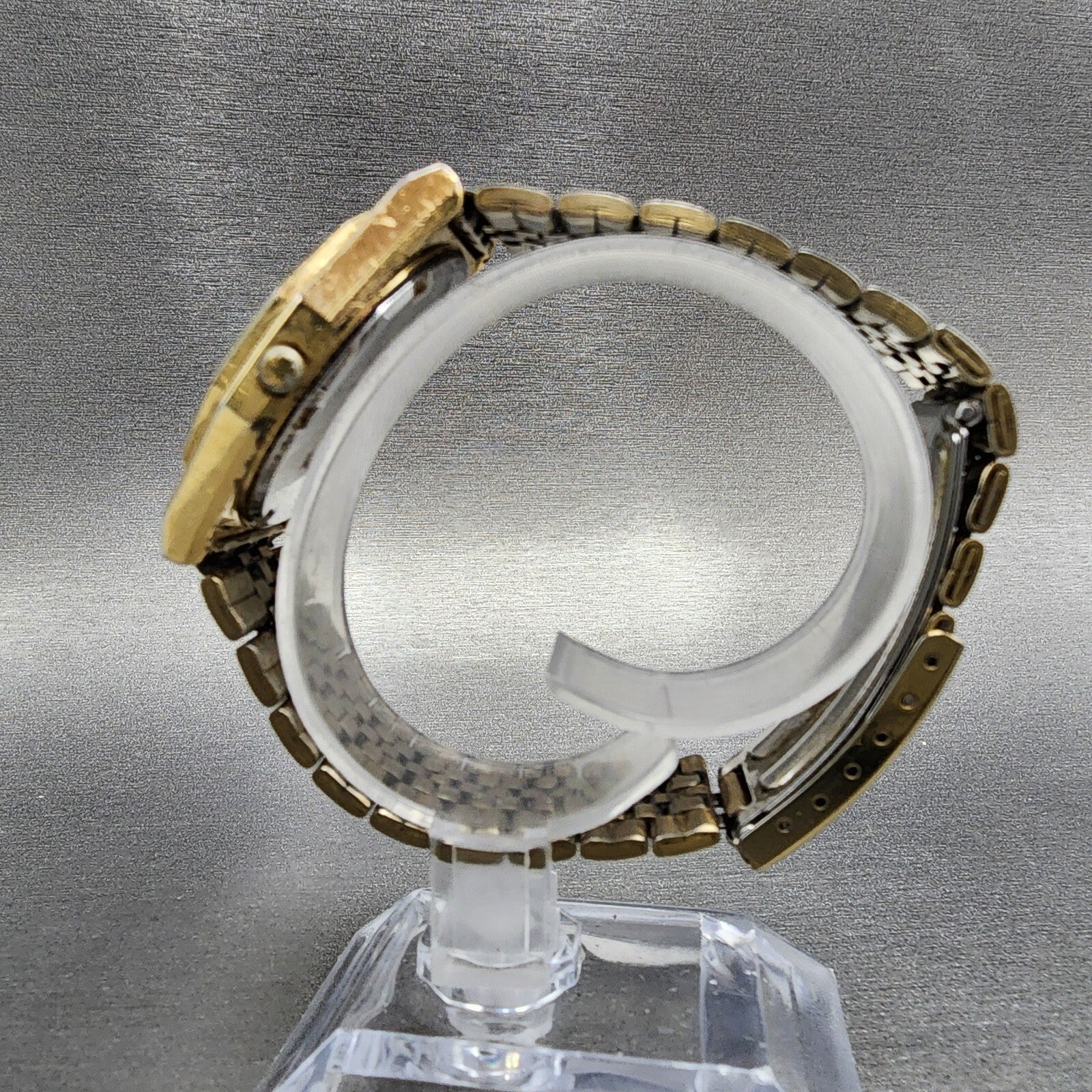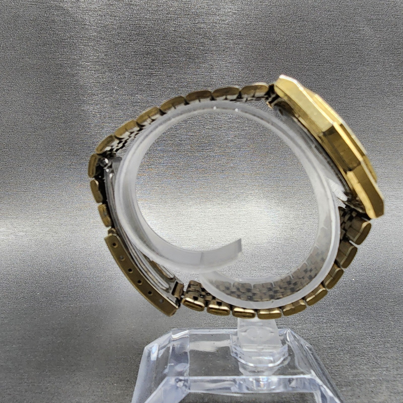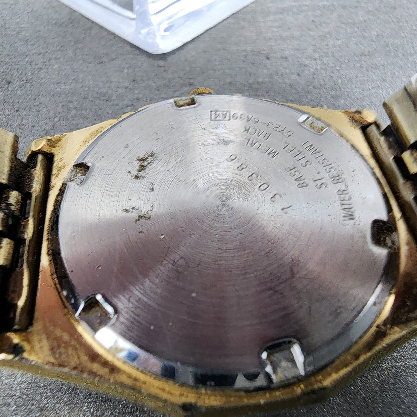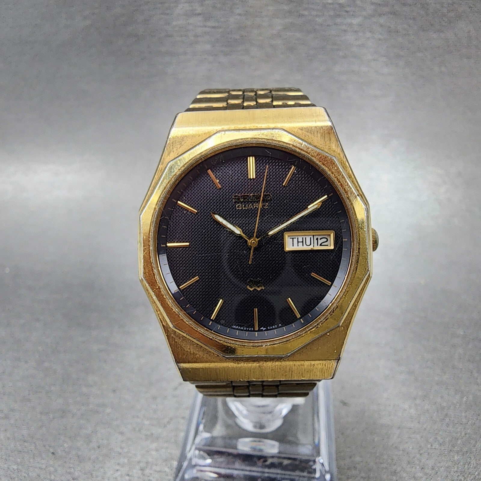 Seiko SQ Watch Men 33mm Blue Dial Gold Tone Daydate Round 5Y23-6A39 New Batery