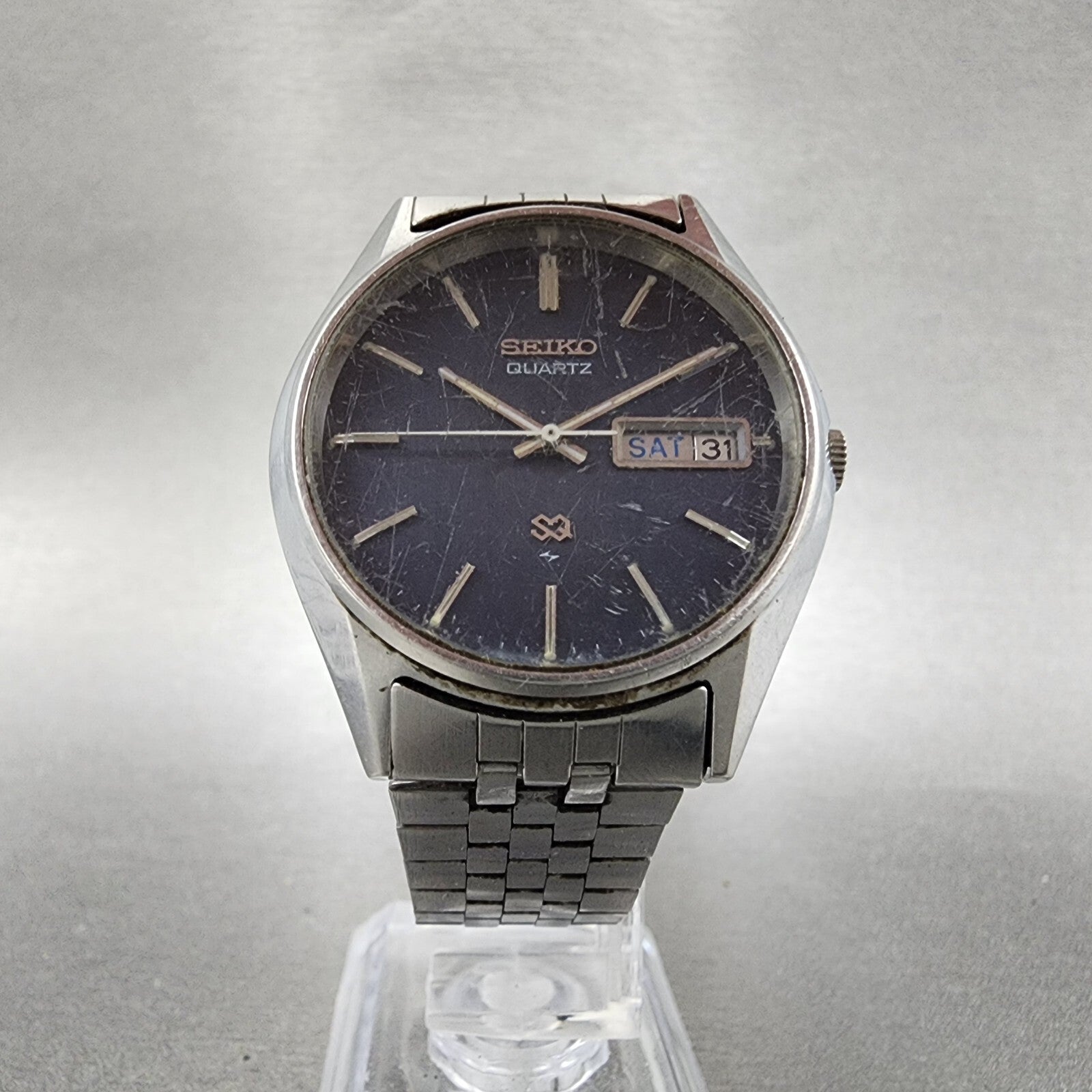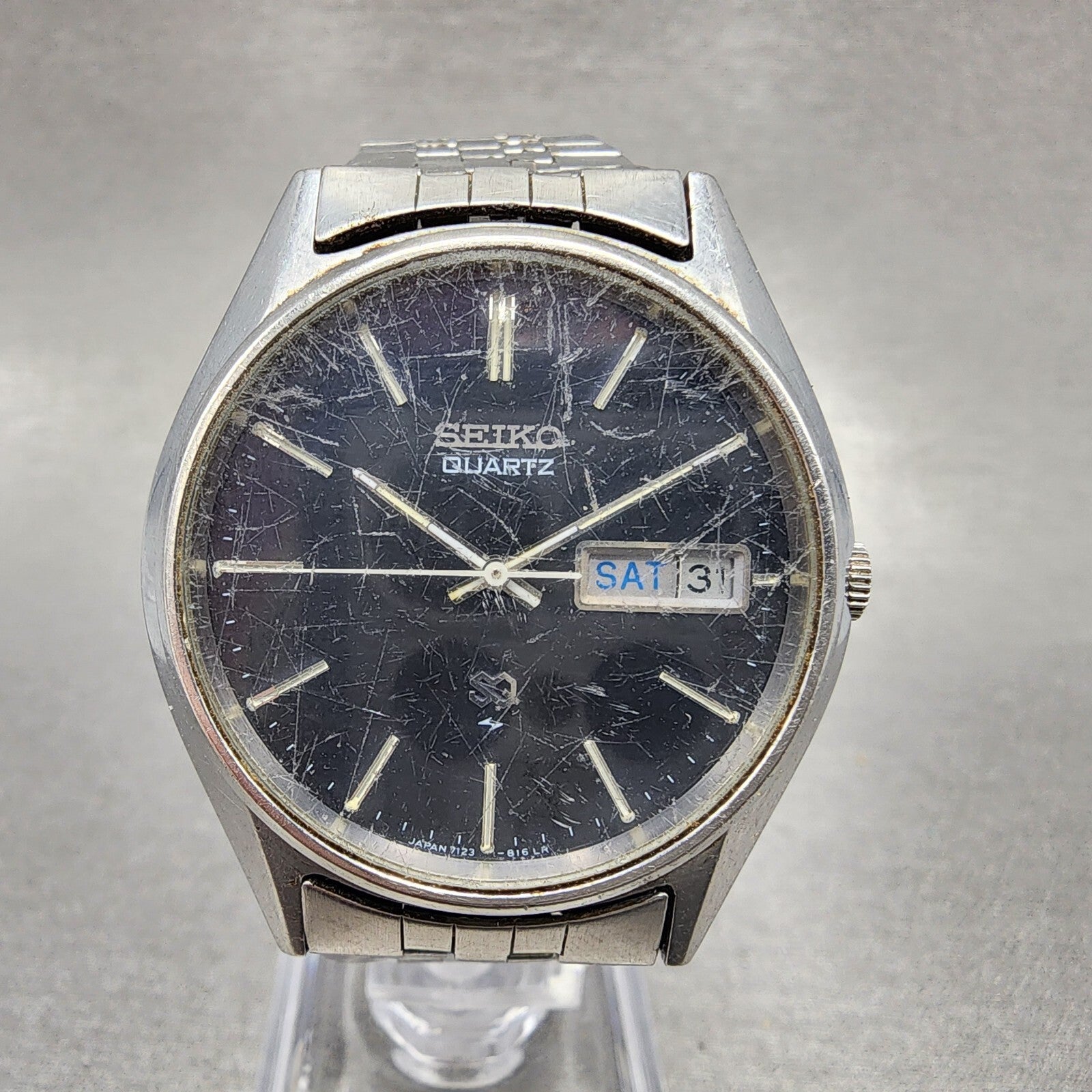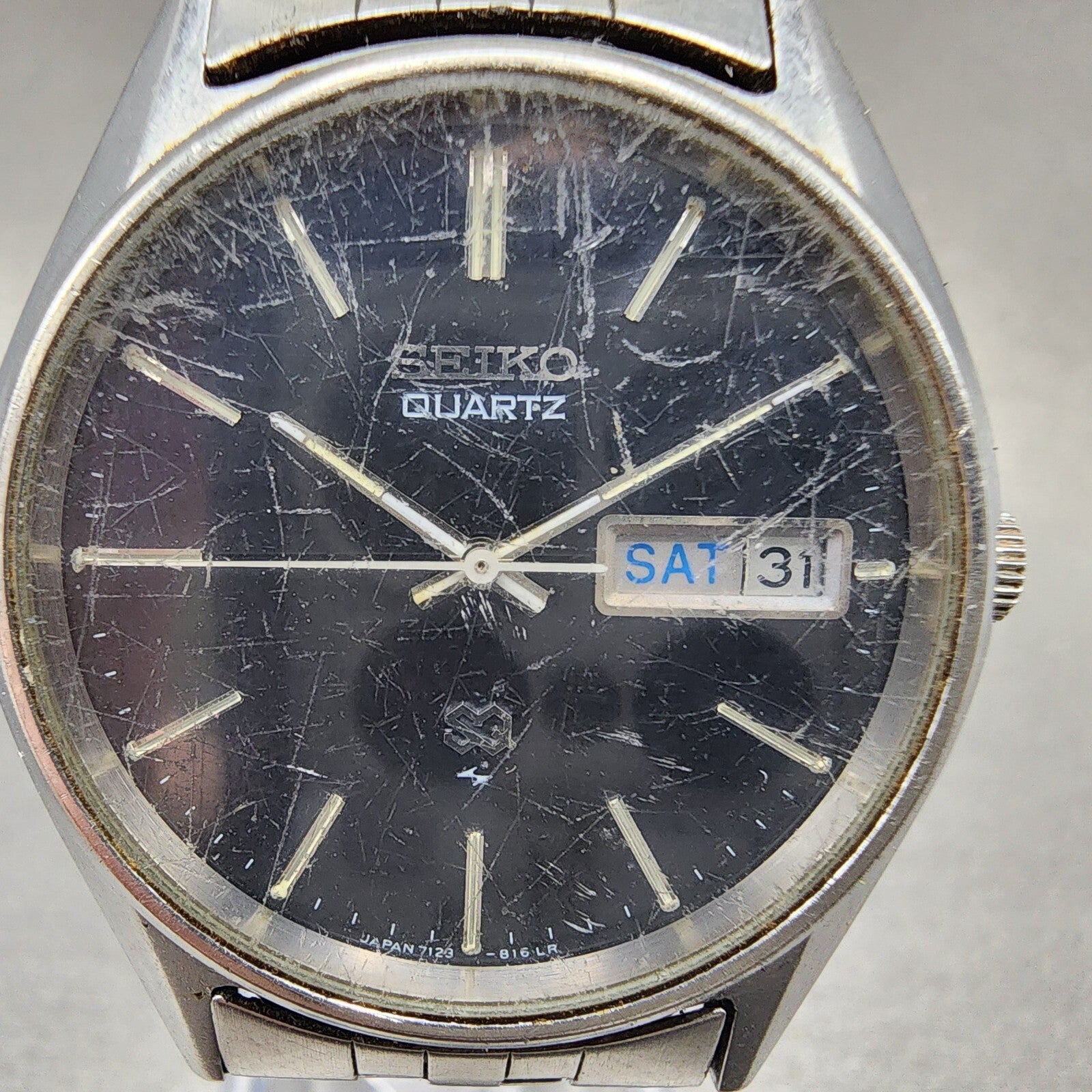 Seiko SQ Watch Men 35mm Black Dial Steel Daydate Round 7123-8460 PARTS