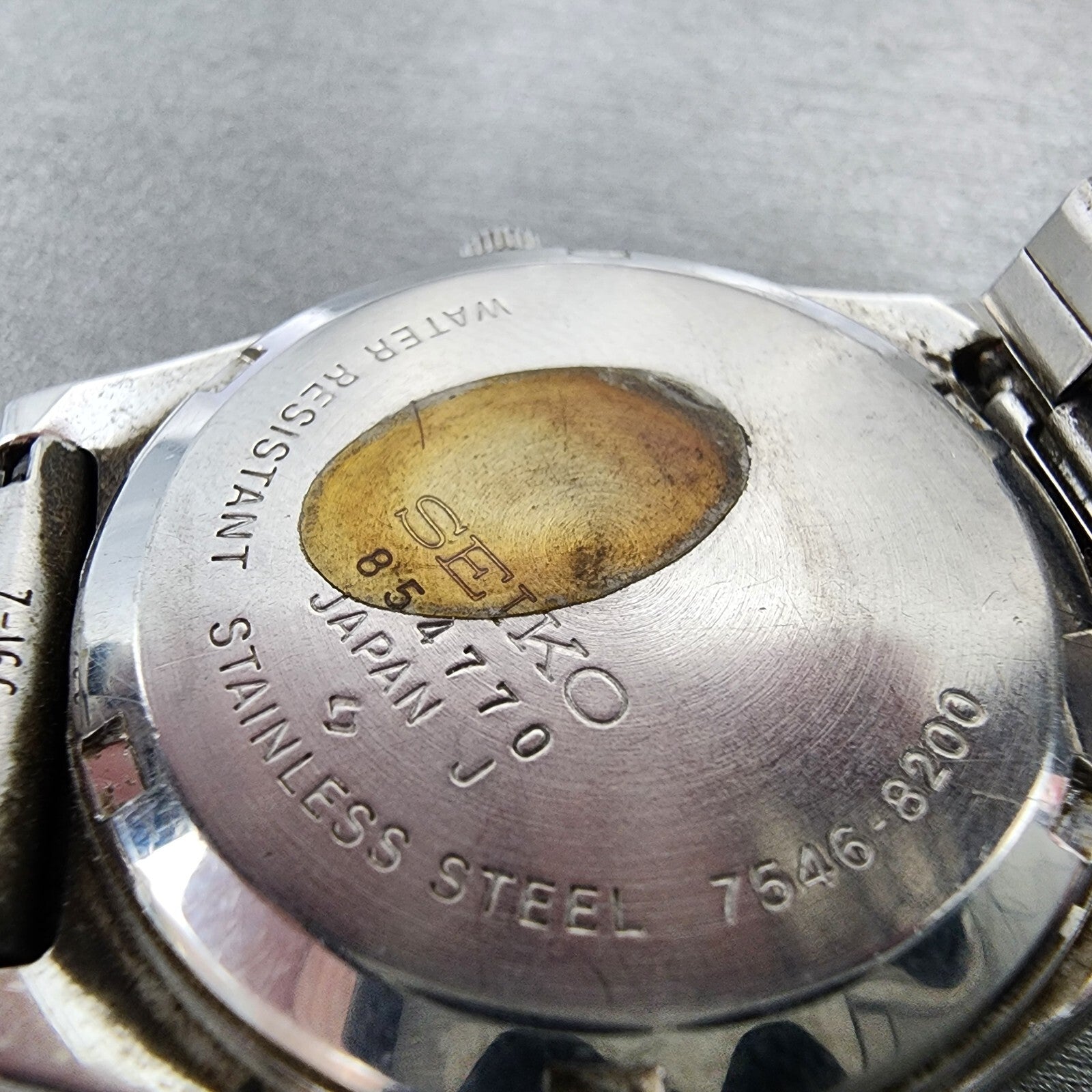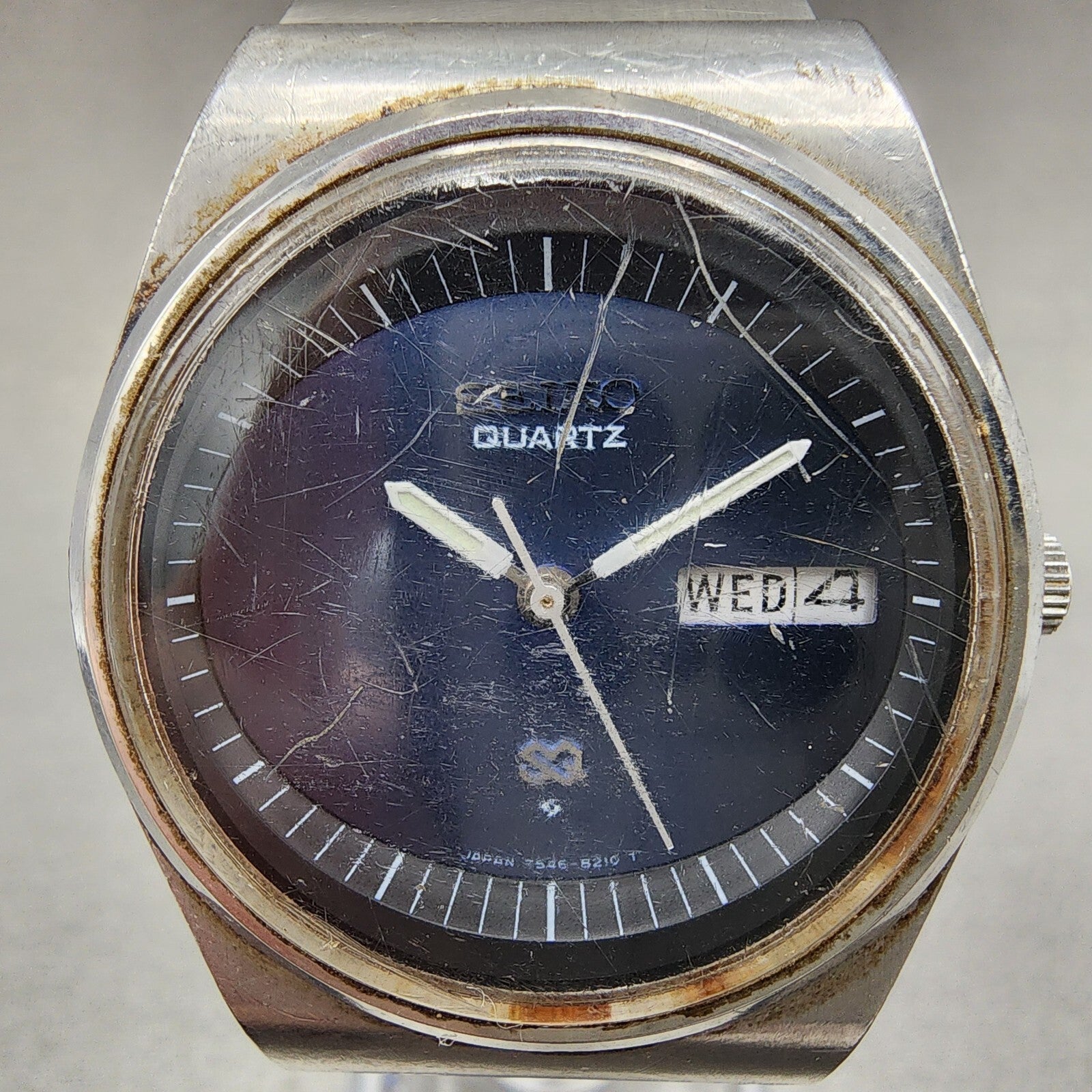 Seiko SQ Watch Men 35mm Blue Dial Silver Tone Daydate 7546-8200 New Battery