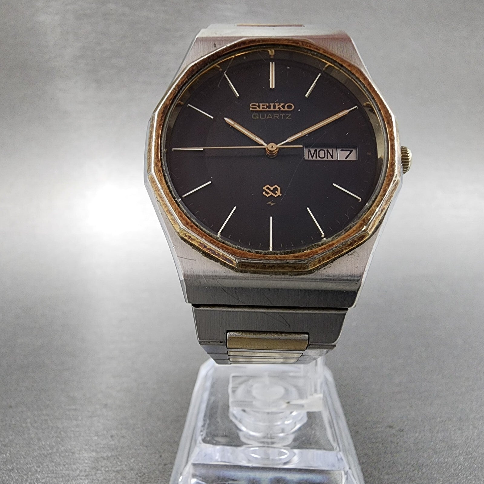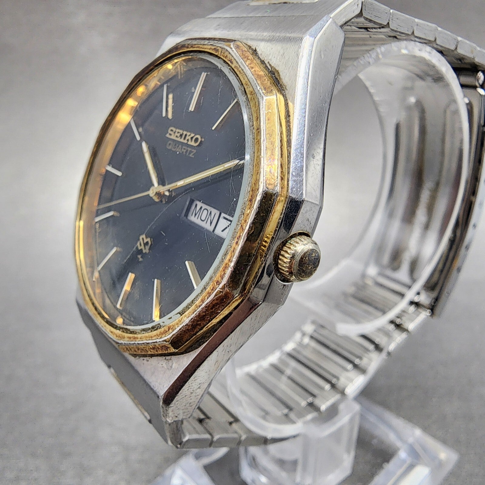 Seiko SQ Watch Men 35mm Blue dial Two Tone Daydate 7123-8470 New Battery