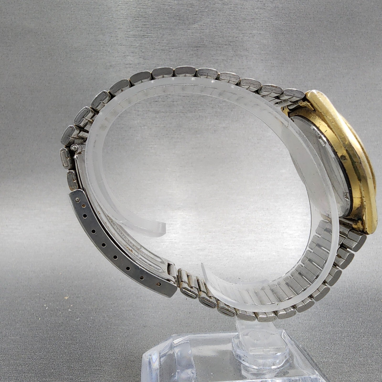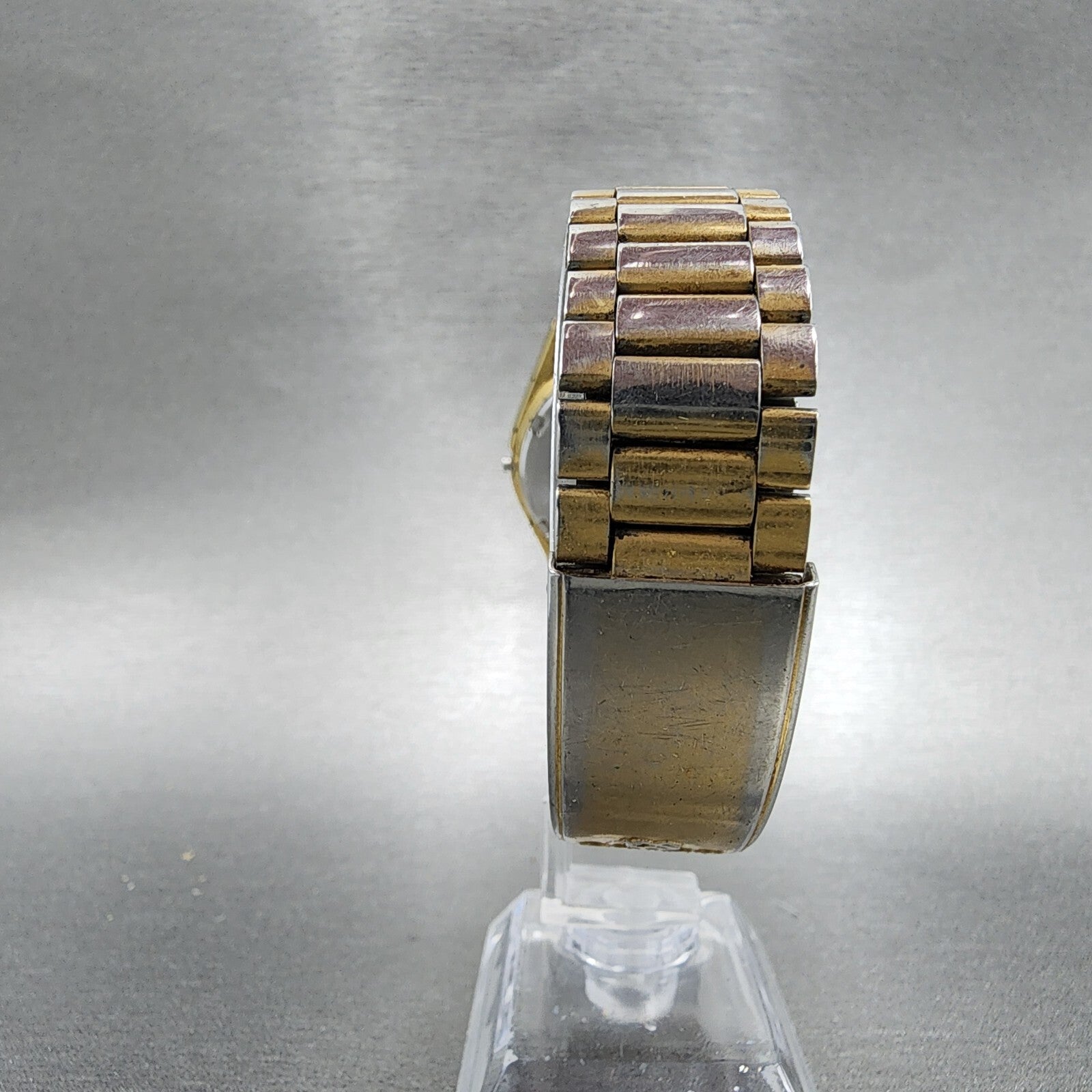 This item has been used and has scratchers on the case and crystal. The watch does not work and will need to be repaired. A NEW BATTERY WILL NOT FIX IT. does not have a crown