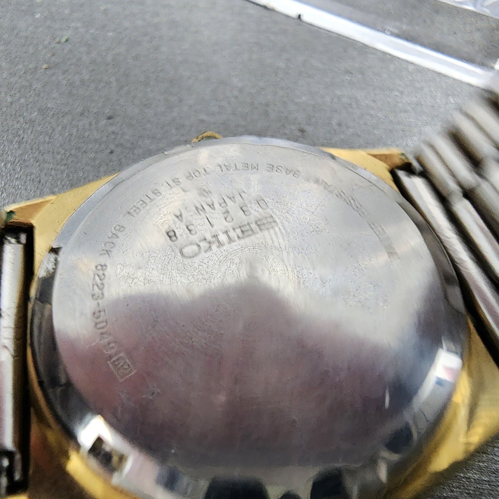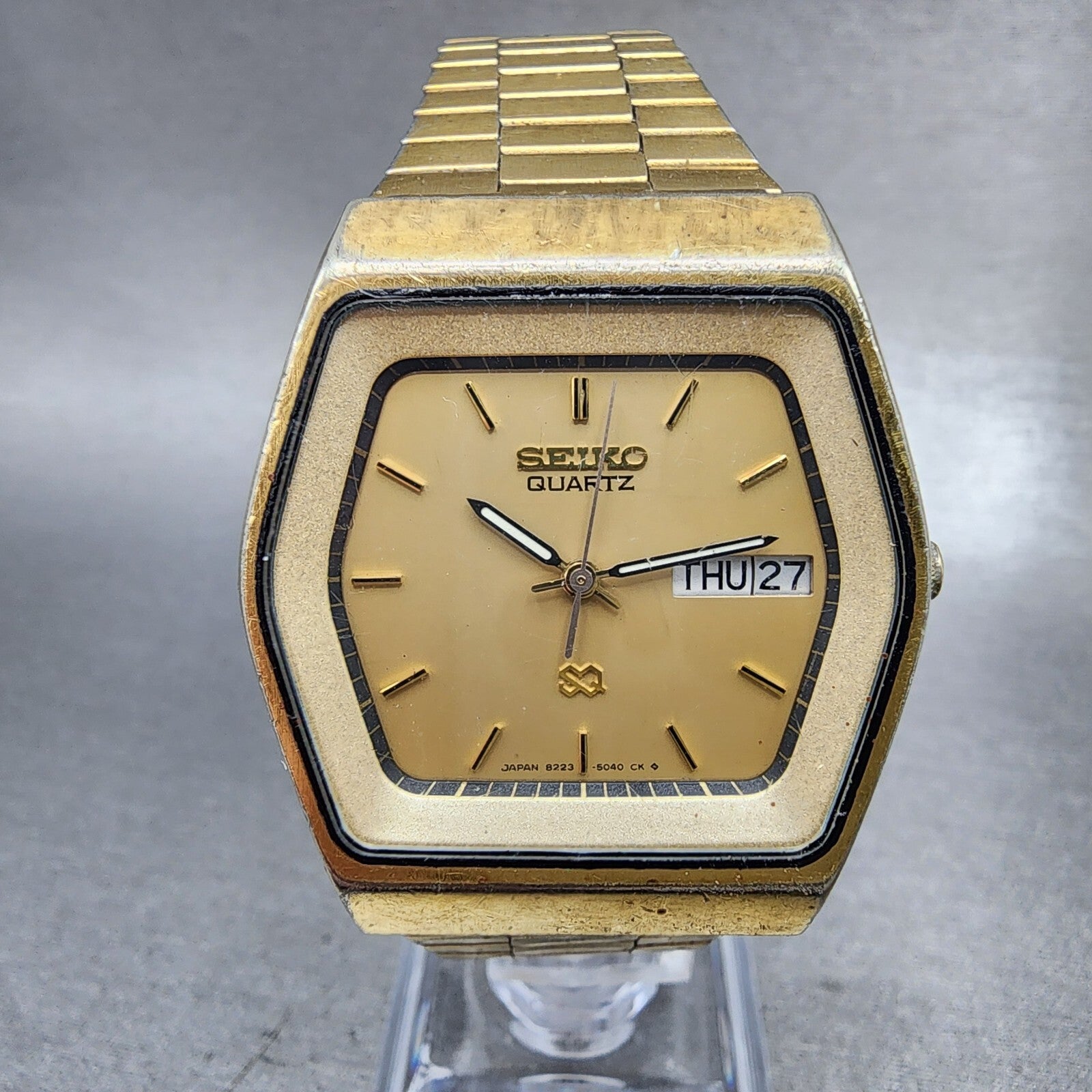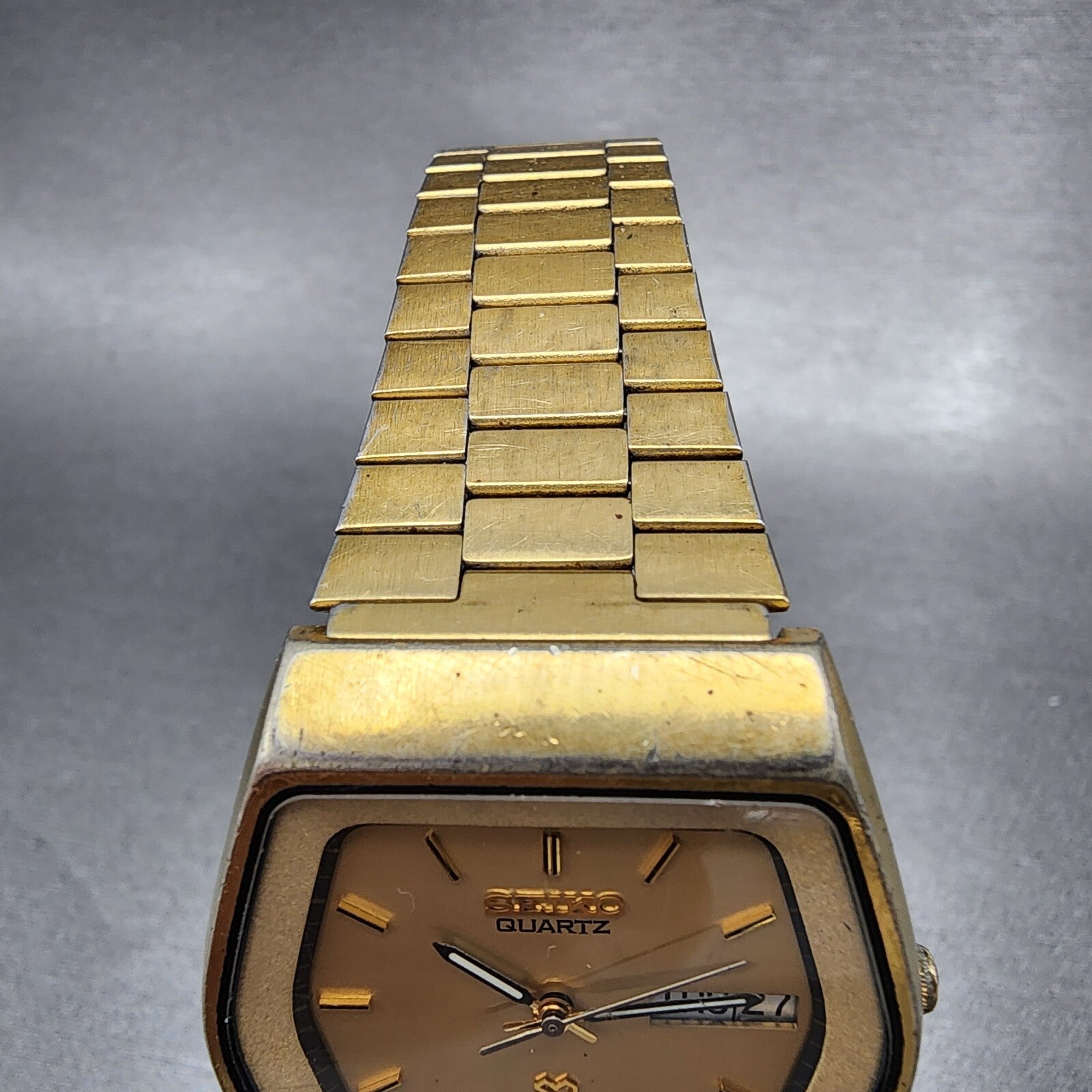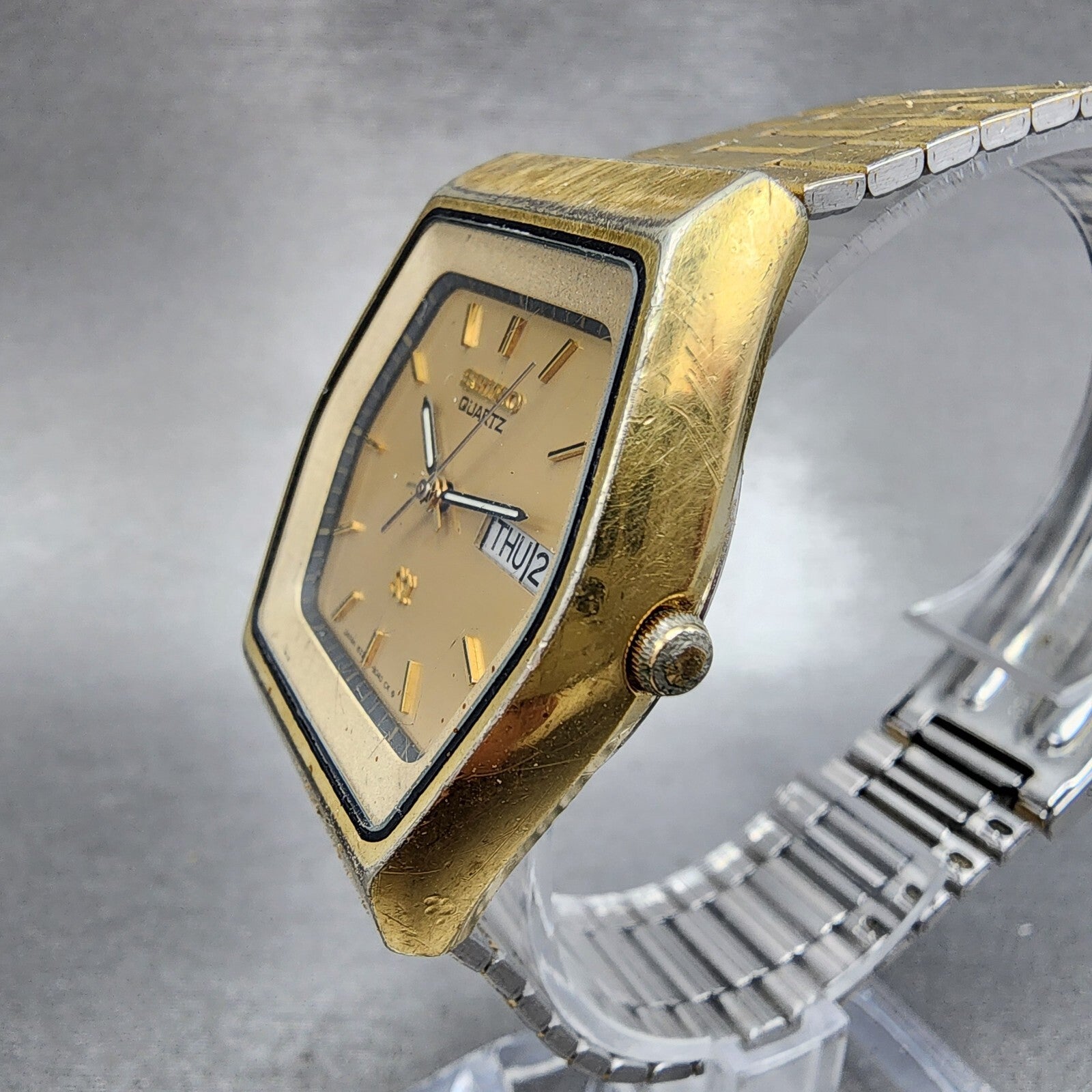 Seiko SQ Watch Men 35mm Gold Dial Gold Tone Daydate Hexagon 8223-5049 New Batt