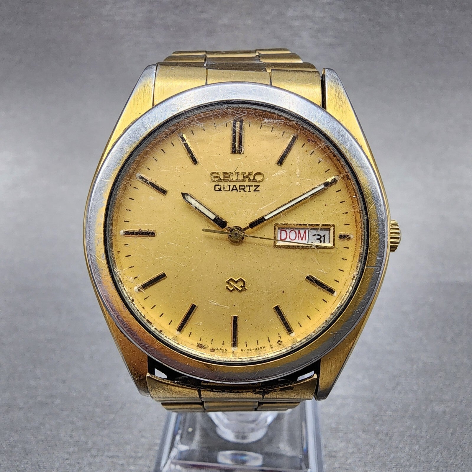 Seiko SQ Watch Men 37mm Gold Dial Gold Tone Daydate 5y23-8189 New Battery