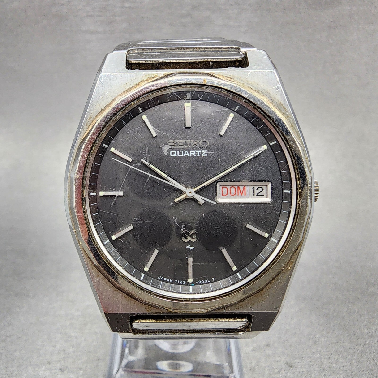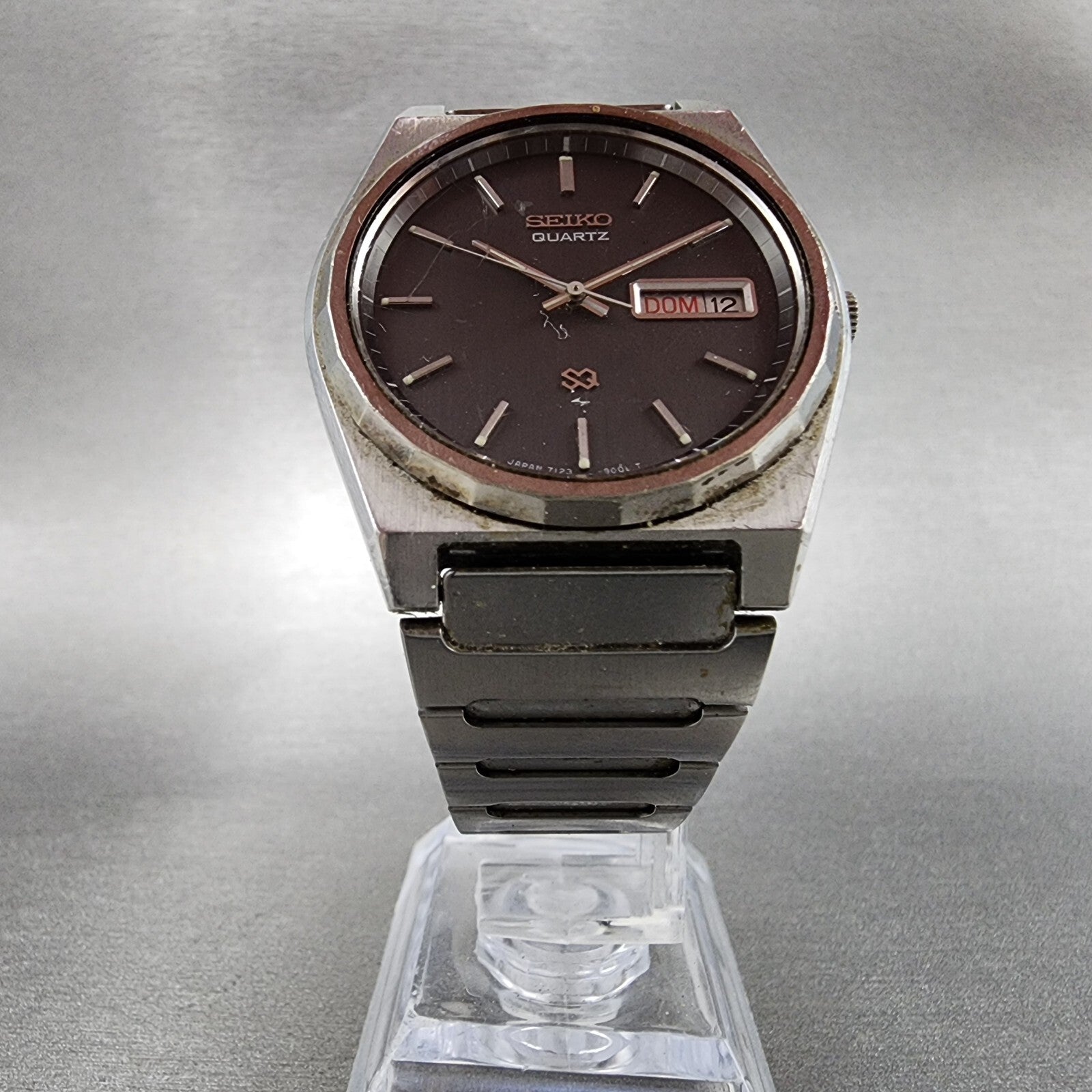 Seiko SQ Watch Men 37mm Gray Dial Steel Daydate Round 7123-9009 PARTS