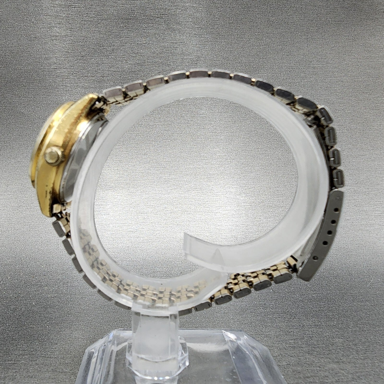 Seiko SQ Watch Women 25mm Champagne Dial Gold Tone Daydate Round New Battery