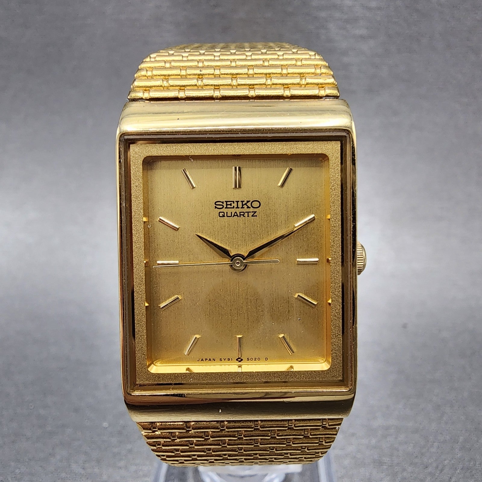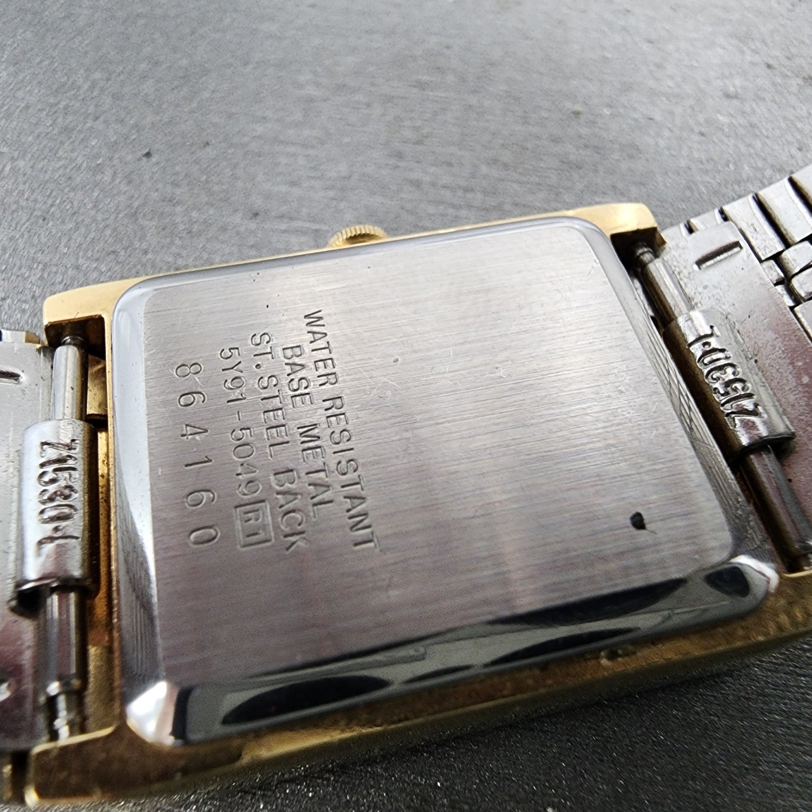 Seiko Tank Watch Men 23mm Champagne Dial Gold Tone 5y91-5049 New Battery
