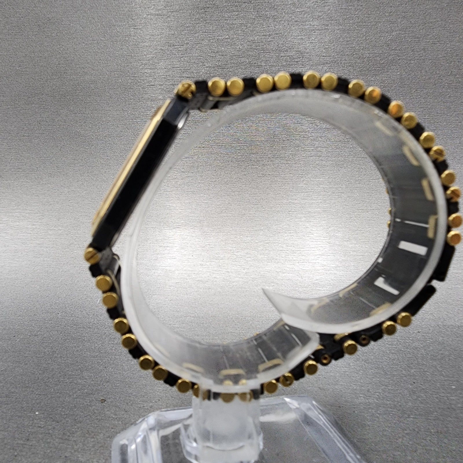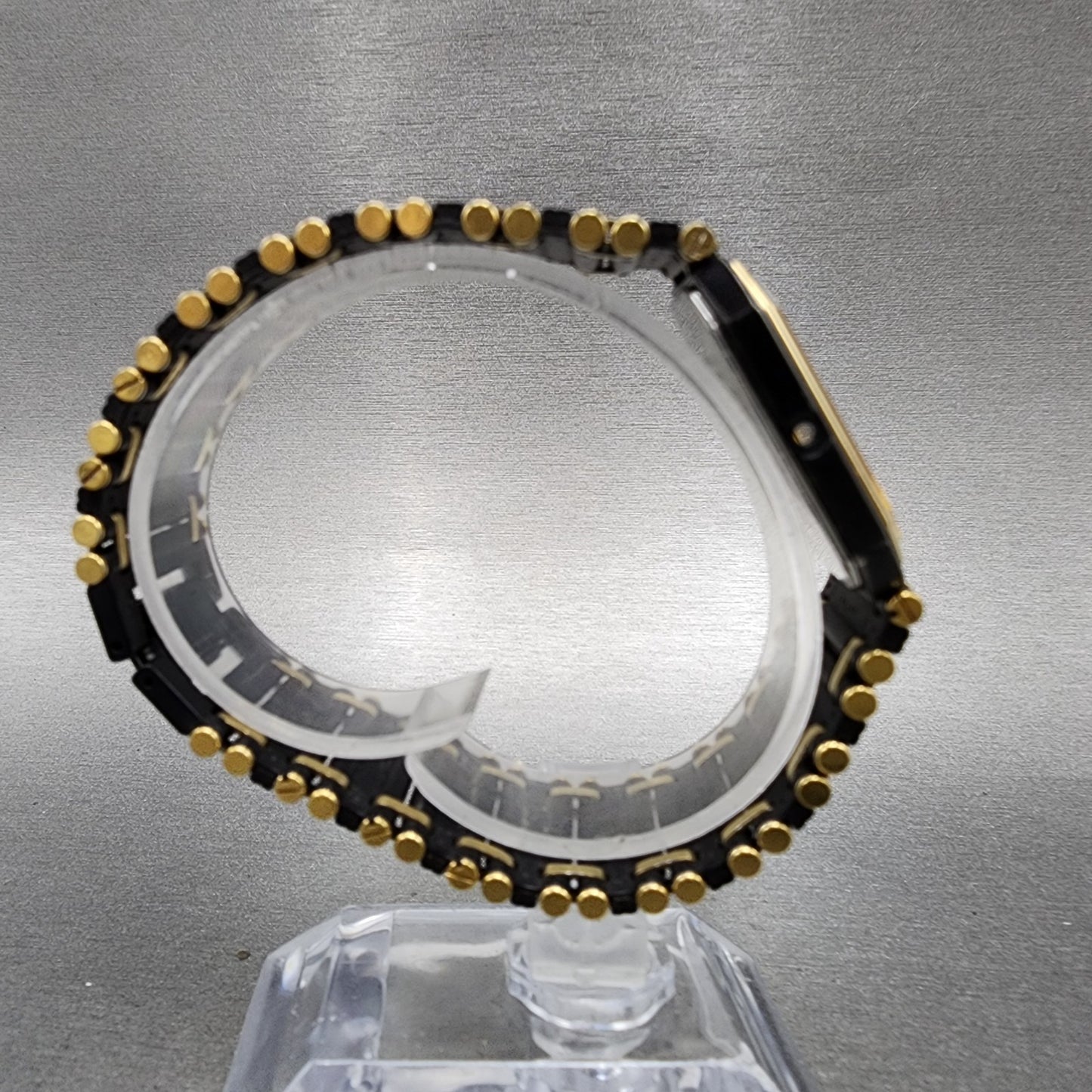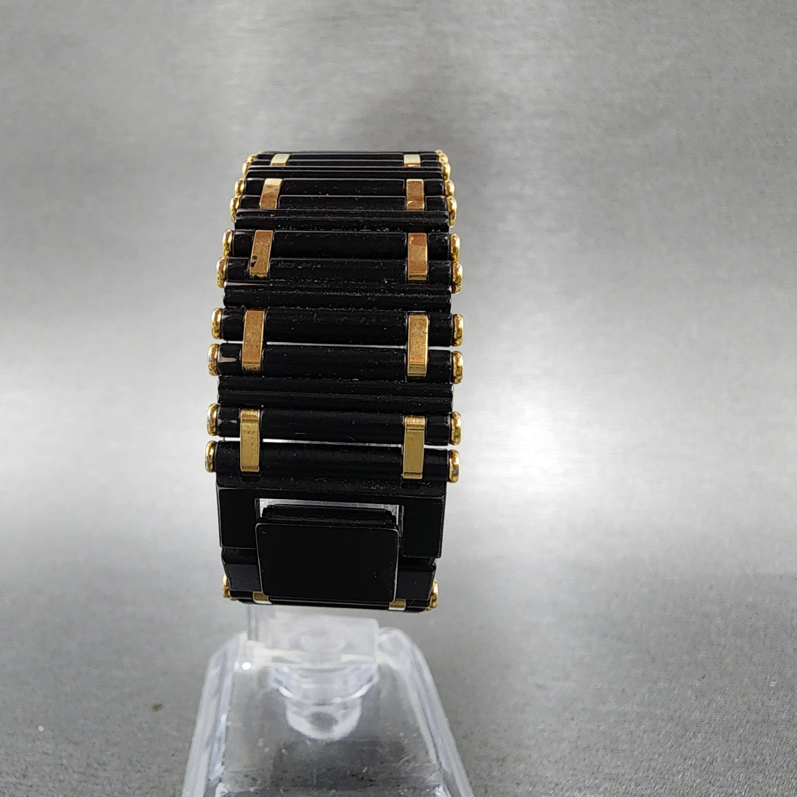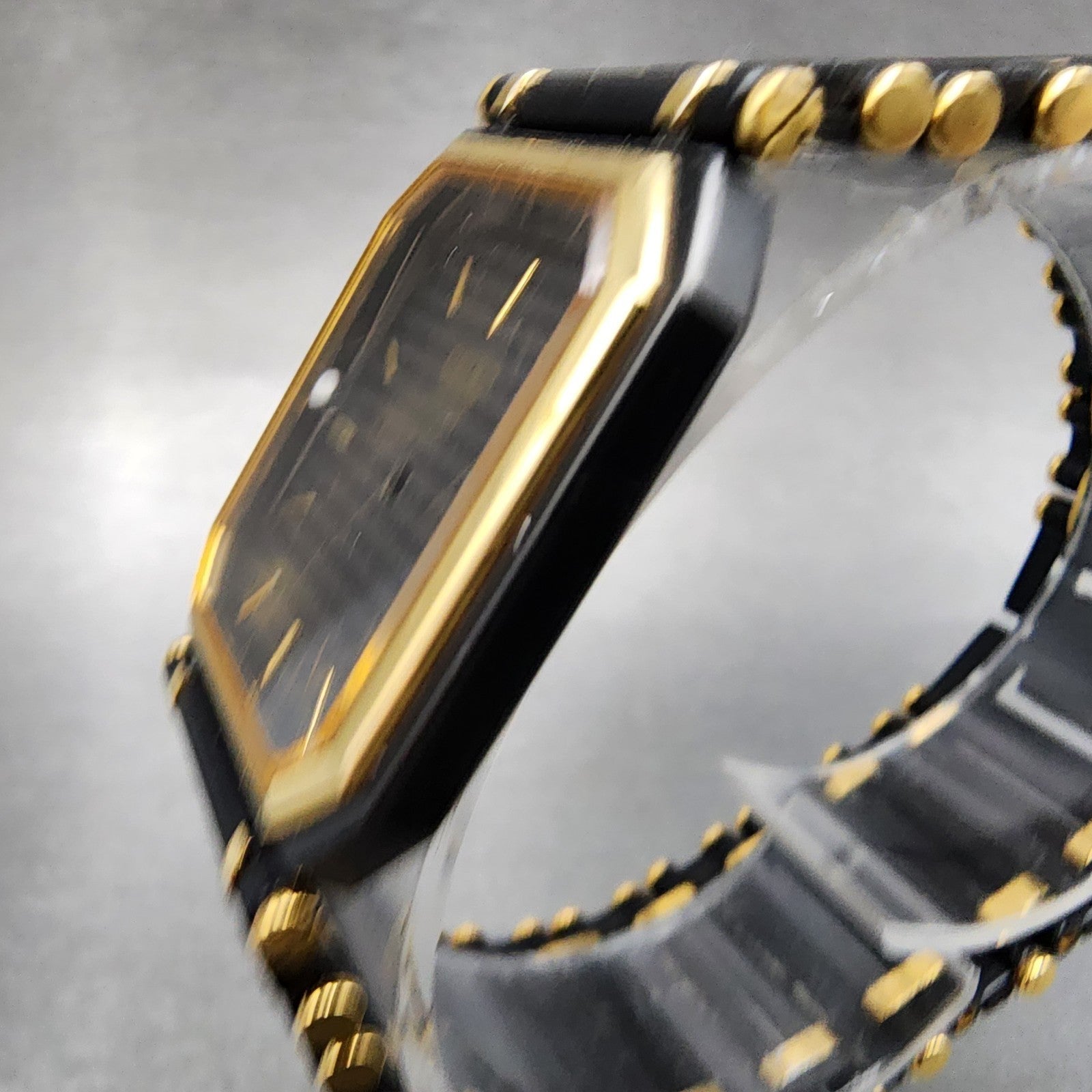 Seiko Tank Watch Men 24mm Black DIal Black & Gold Tone Octagon 7430-5810 PARTS