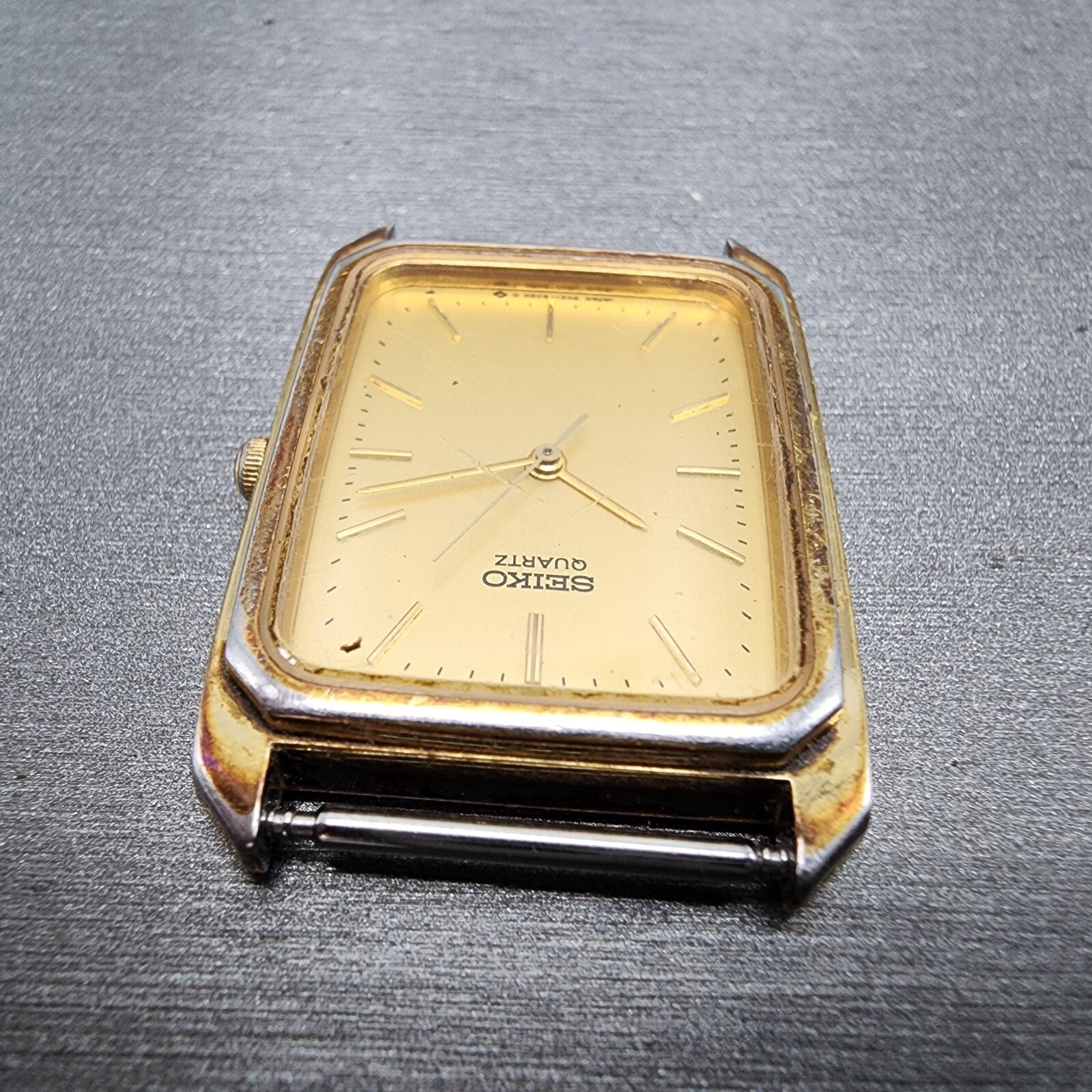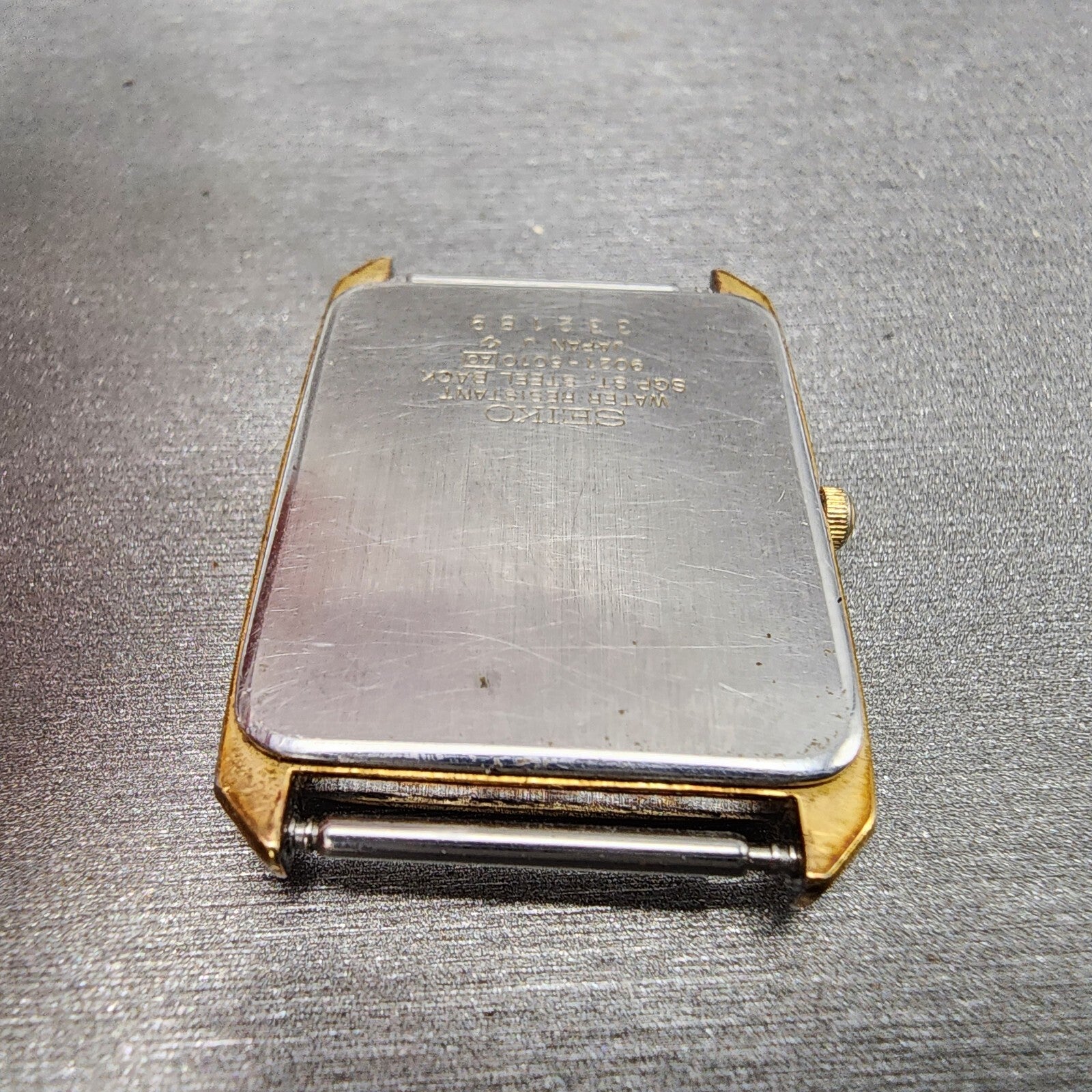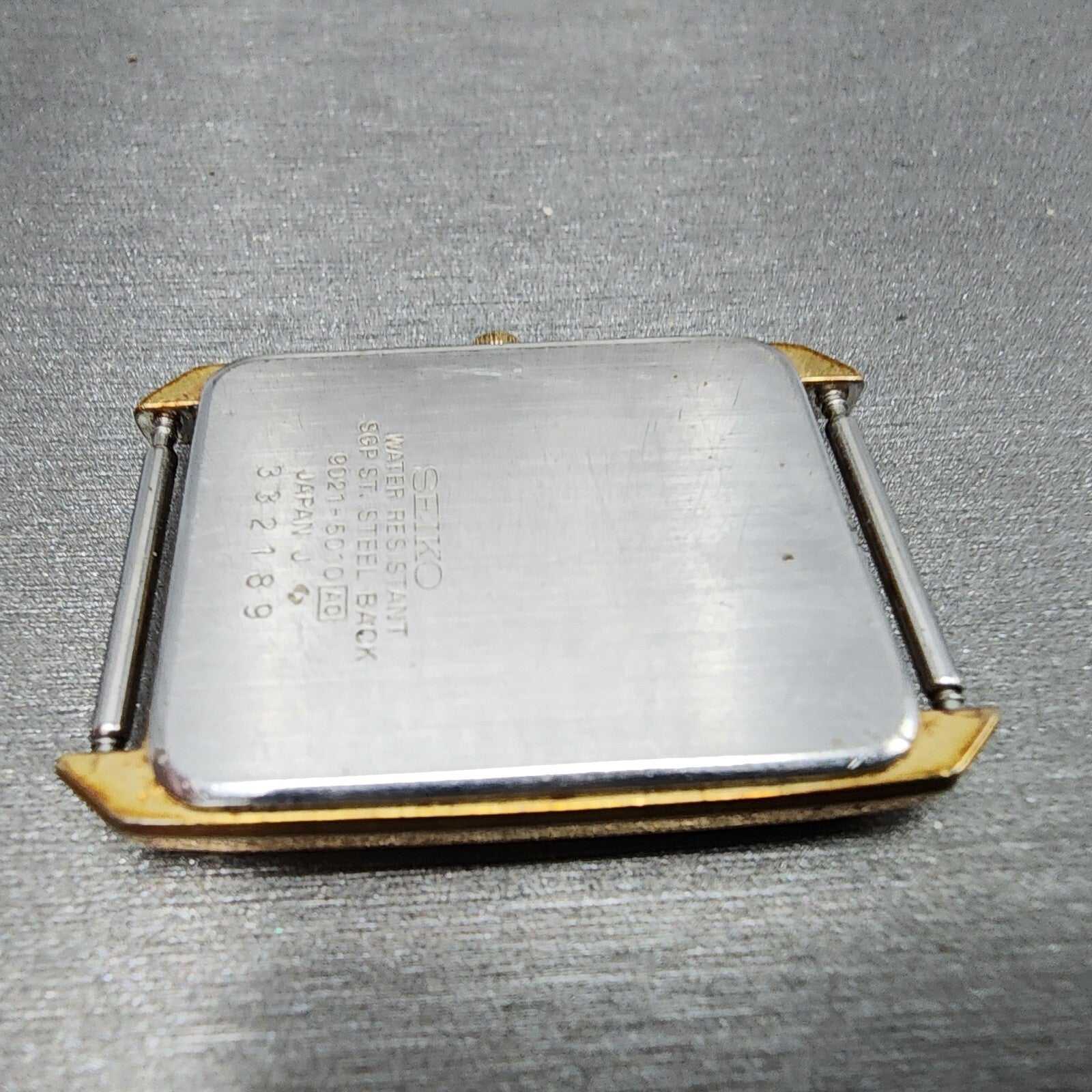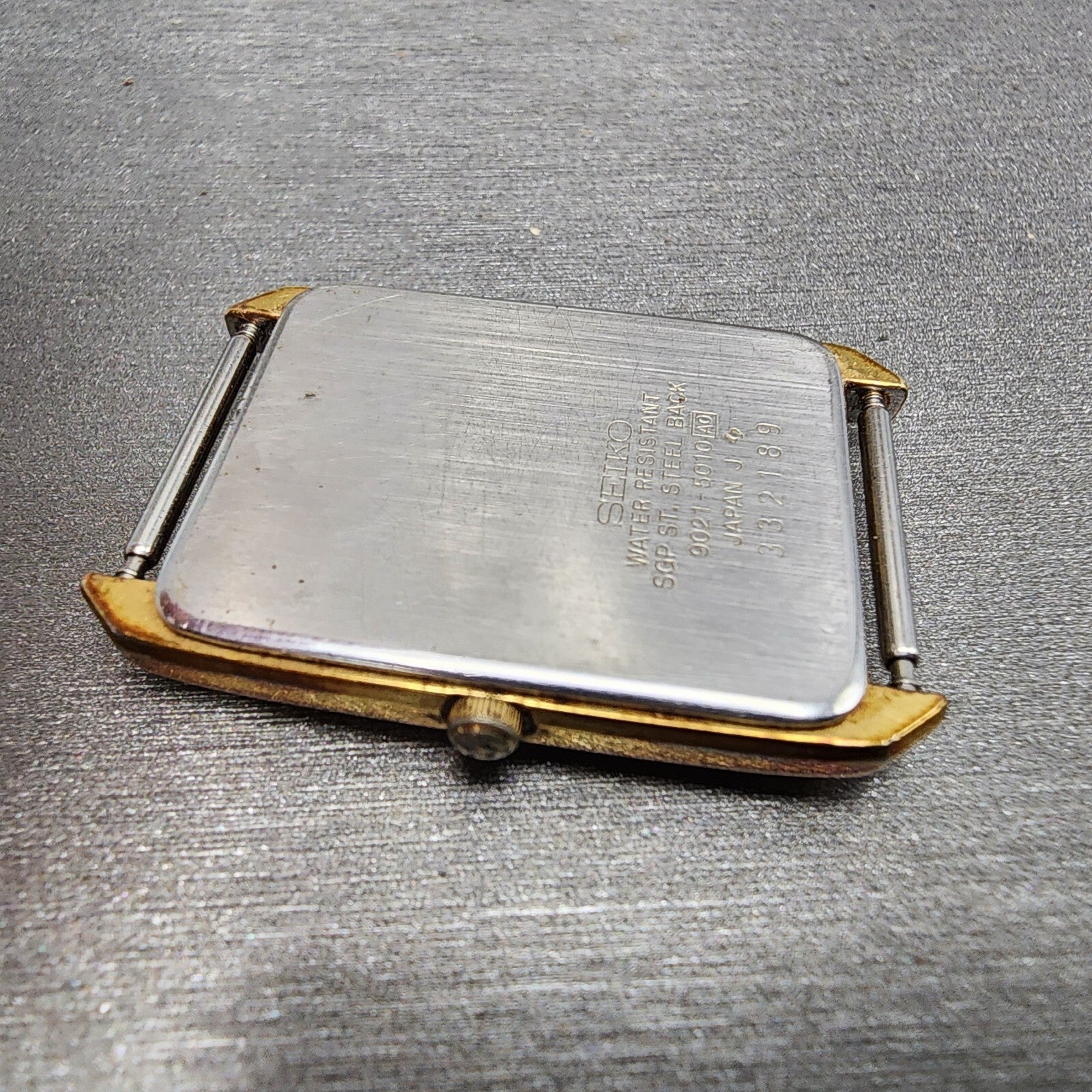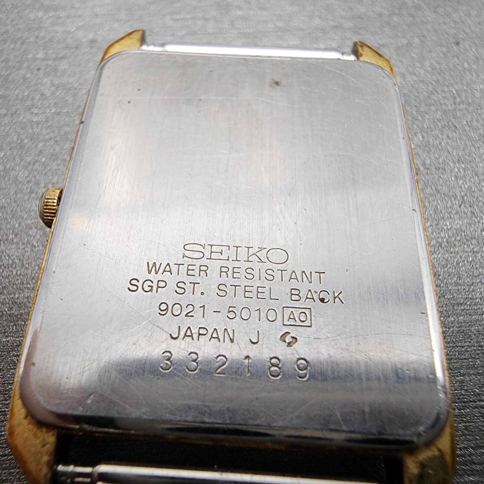 Seiko Tank Watch Men 25mm Champagne Dial Gold Tone Rectangle 9021-5010 New Batt
