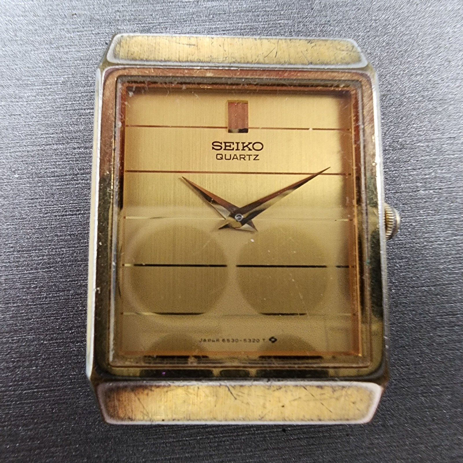 Seiko Tank Watch Men 25mm Gold Dial Gold Tone Rectangle 6530-5199 PARTS