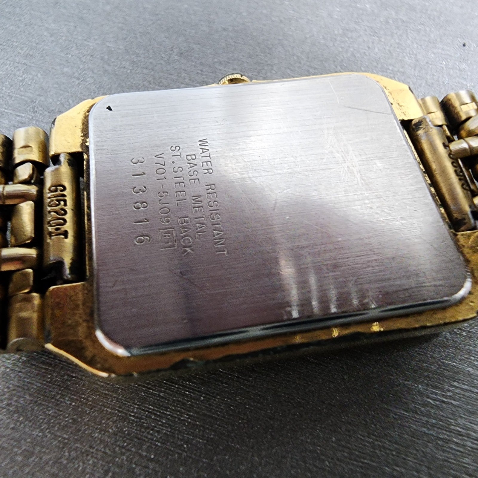 Seiko Tank Watch Men 26mm Black Dial Gold Tone V701-5jo9 New Battery